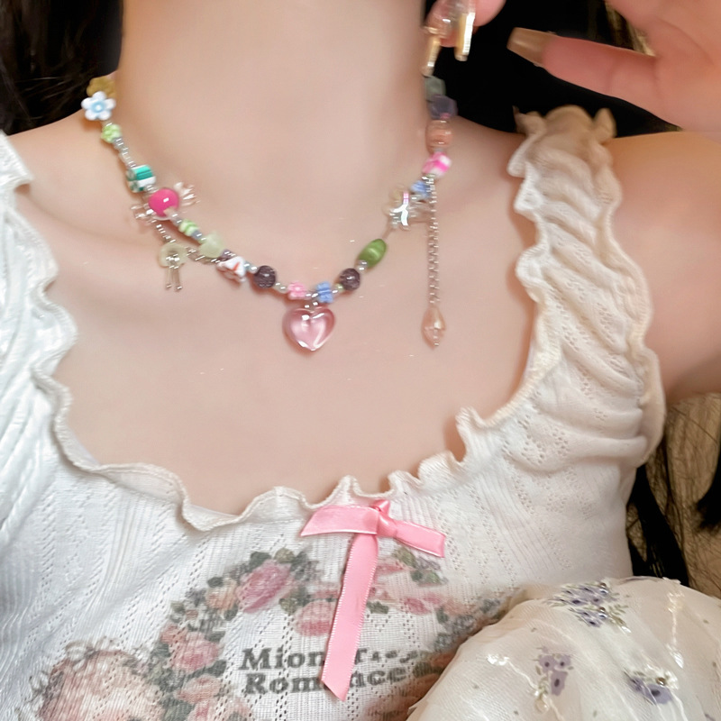 蜜桃粉!夏日多巴胺爱心糖果项链女小众设计甜酷辣妹锁骨链脖颈链