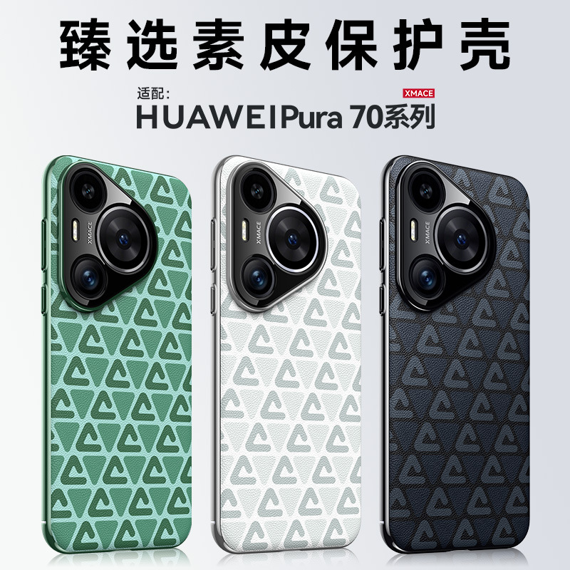 适用华为Pura80Ultra轻奢素皮手机壳松林电镀镜头P70高级感护套