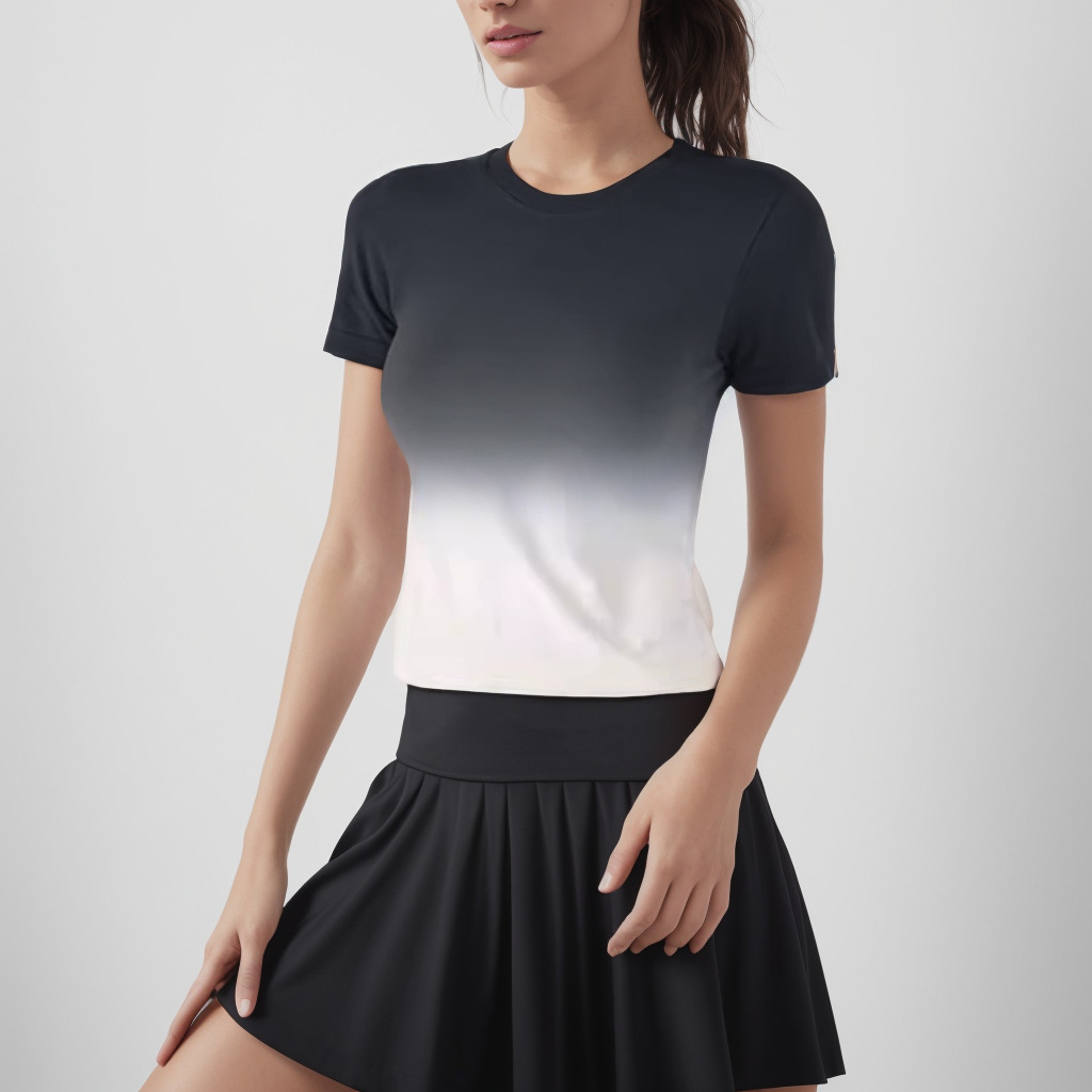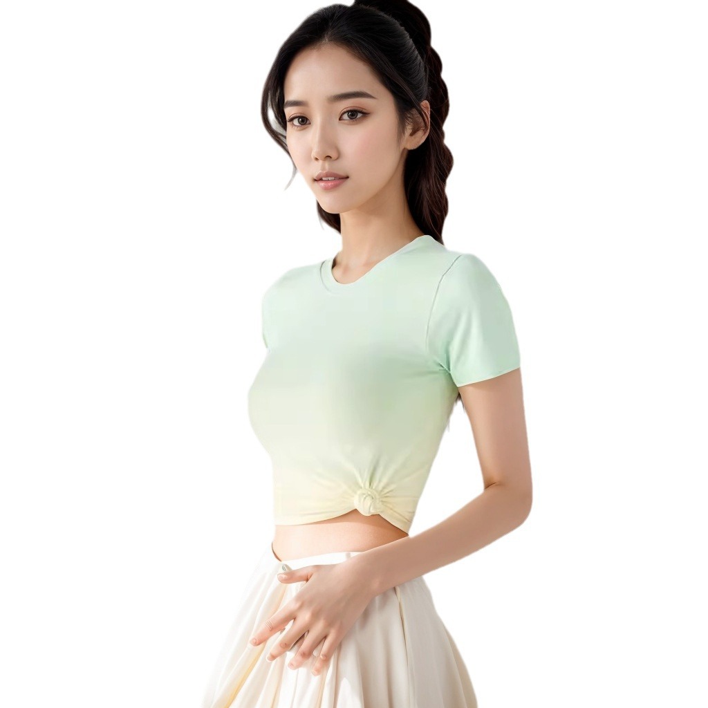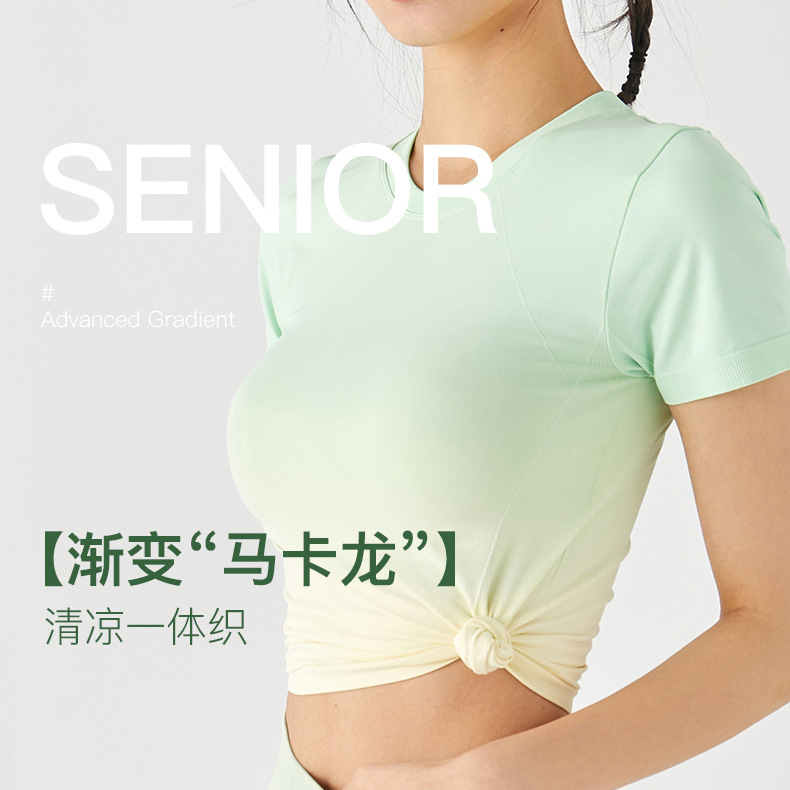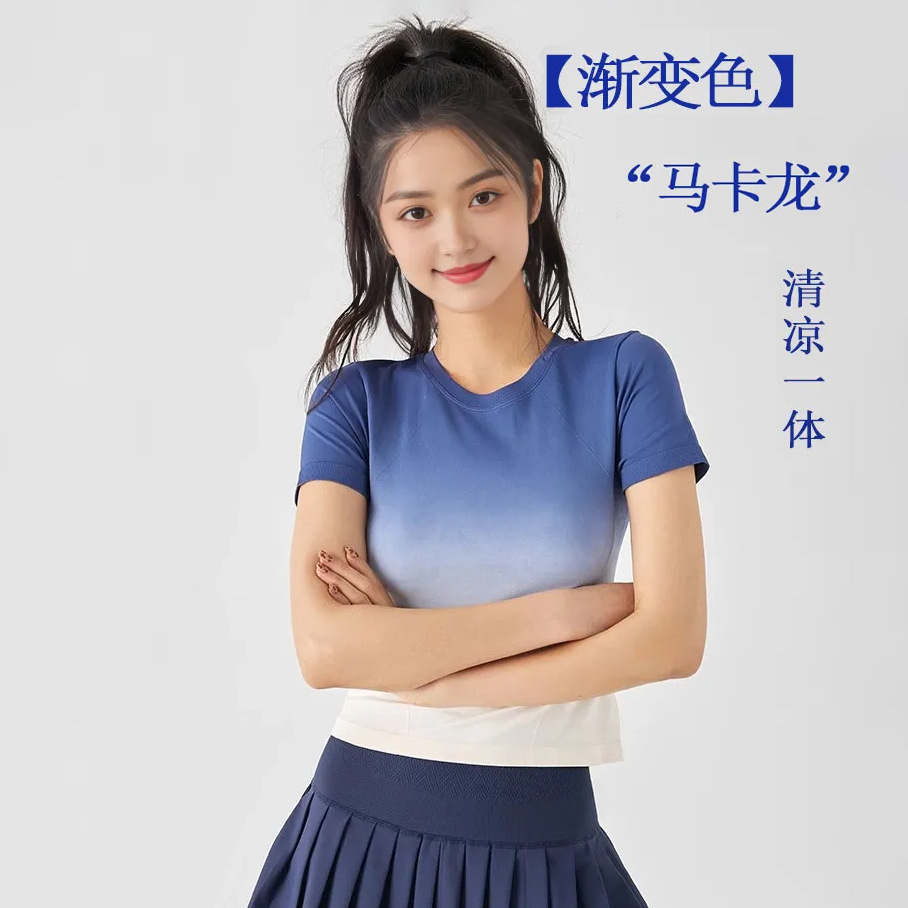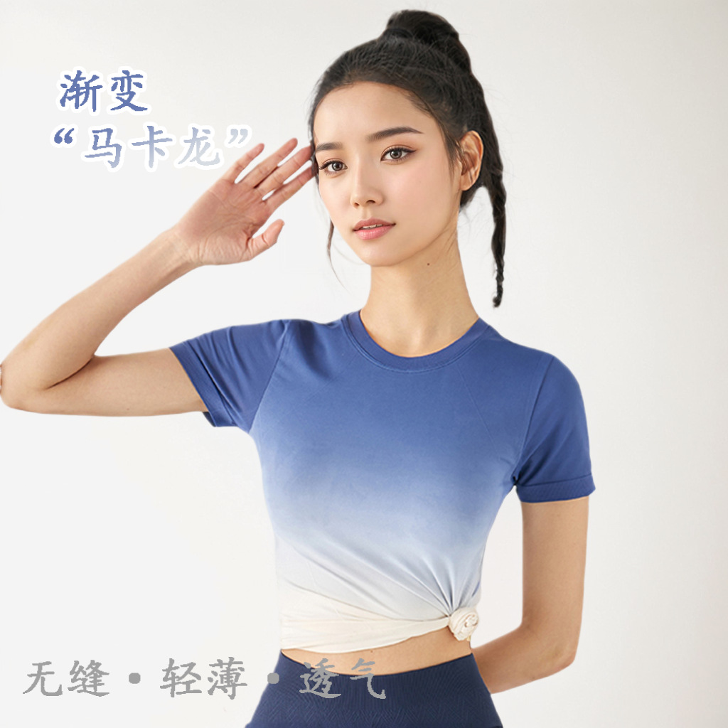 瑜伽服夏季女瑜伽服短袖修身高级感渐变跑步健身运动上衣速干T恤