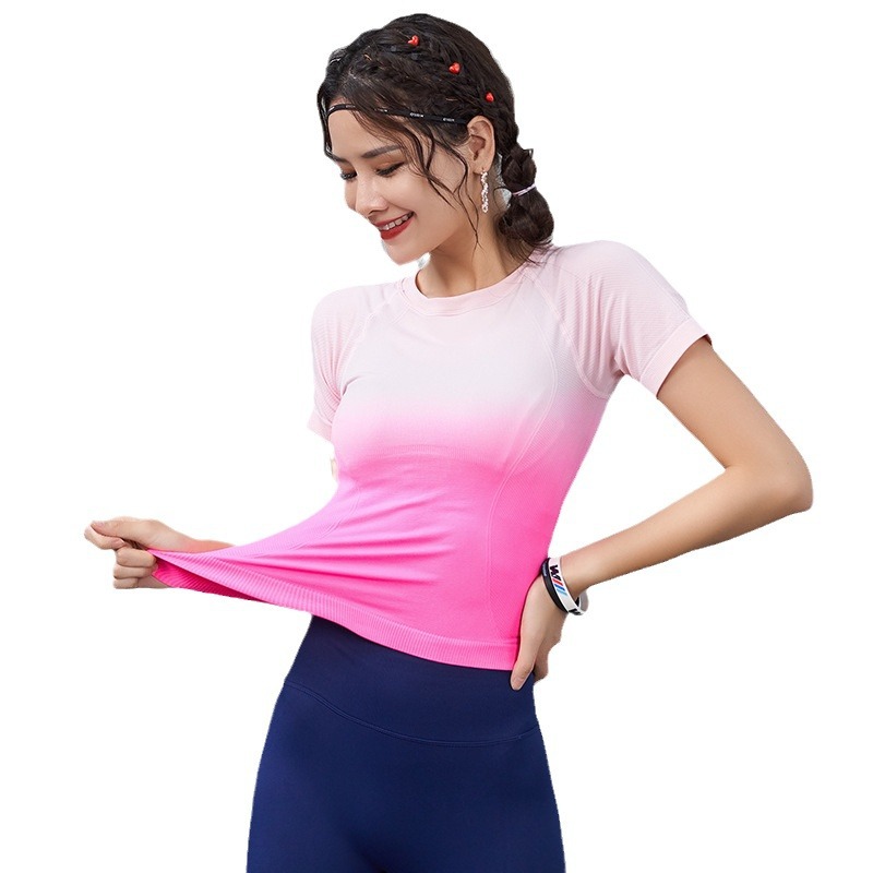 瑜伽服高级感瑜伽服渐变色女夏季薄款速干跑步短袖运动修身健身服