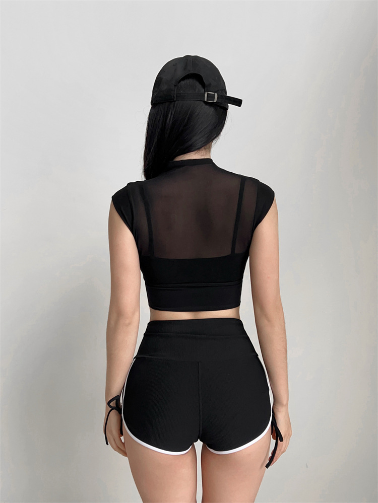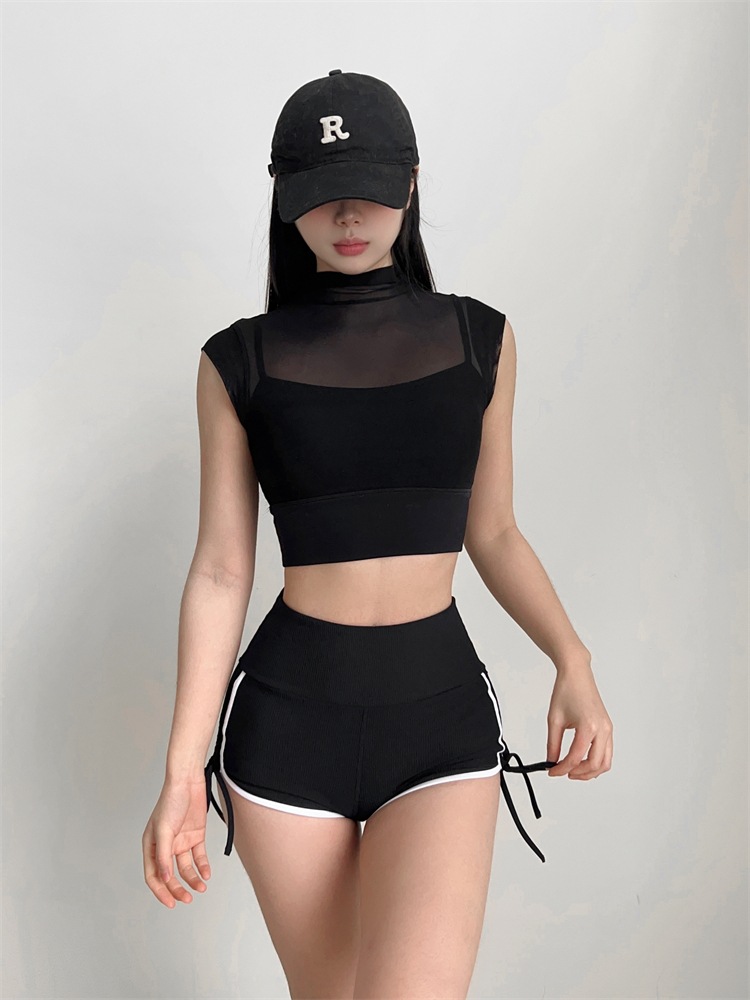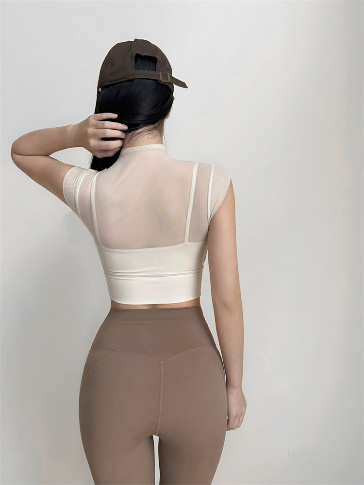 固定式胸垫网纱气质无袖运动上衣瑜伽健身背心透气夏微短袖
