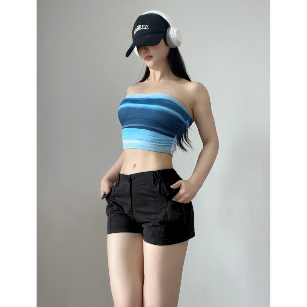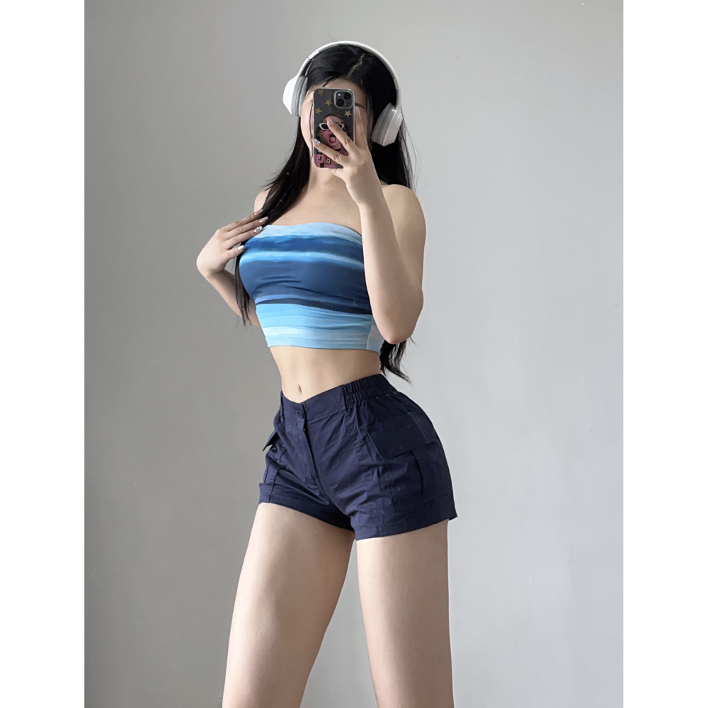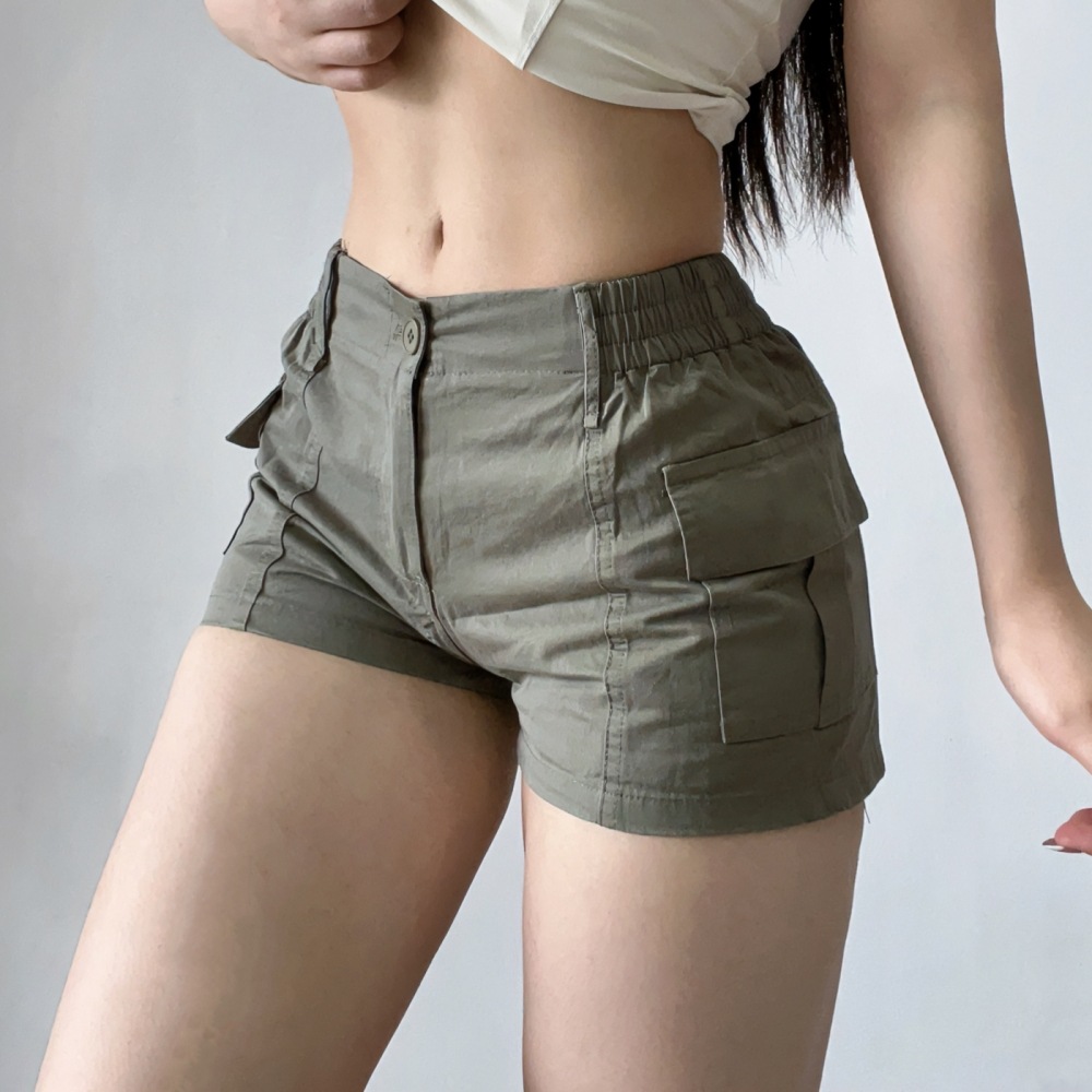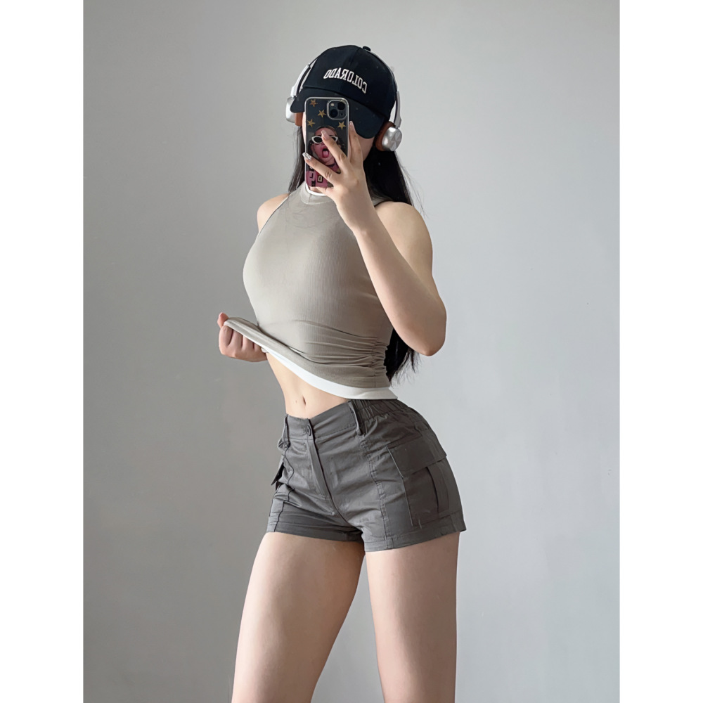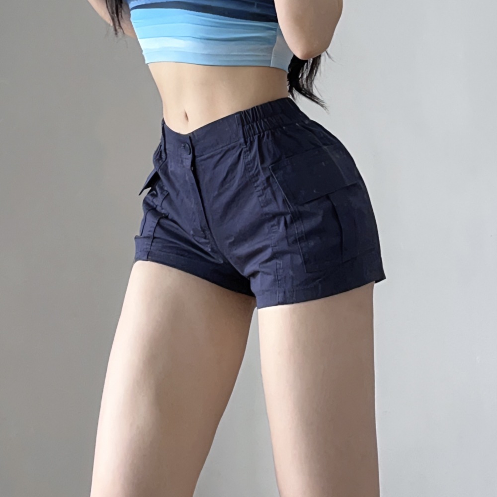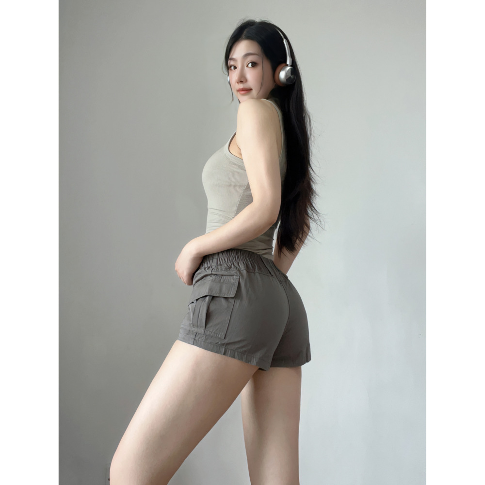 工装高腰显腿长跑步辣妹运动女裤宽松辣妹运动休闲三分短裤