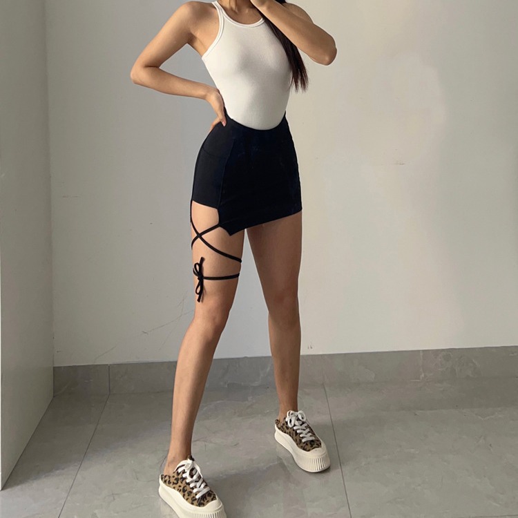 显腿长绑带高腰运动裤裙瑜伽透气防走光假两件网球跑步健身短裙女