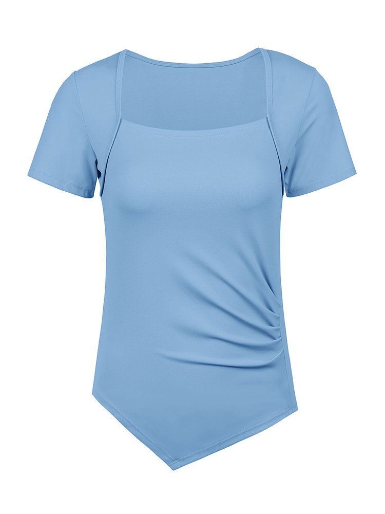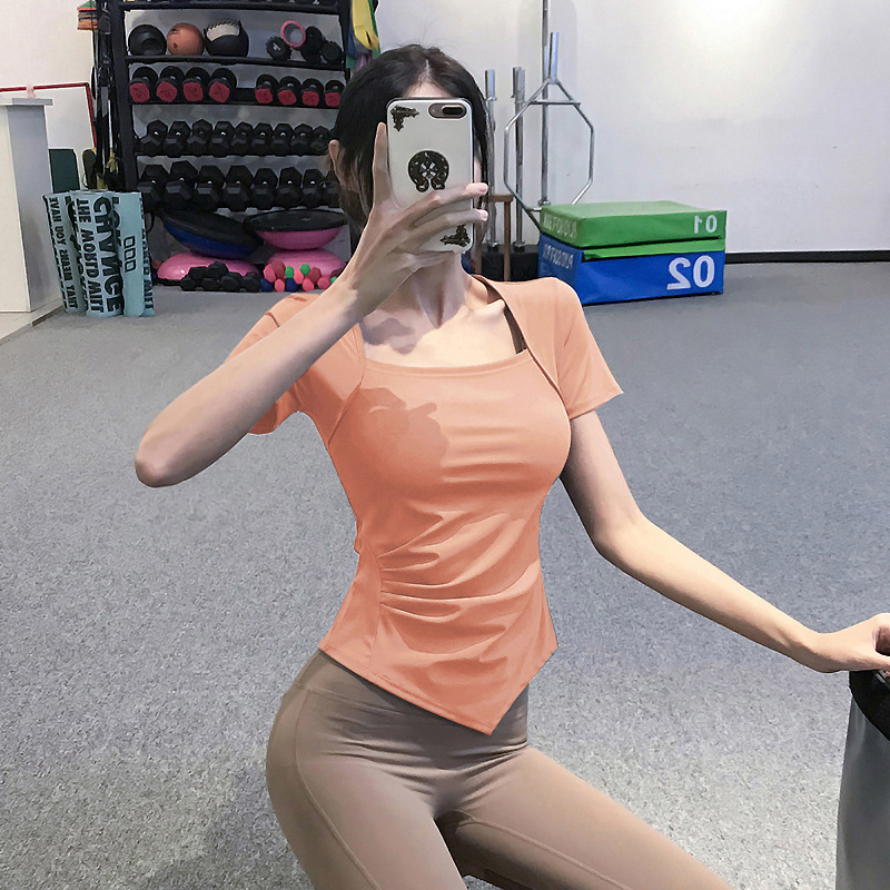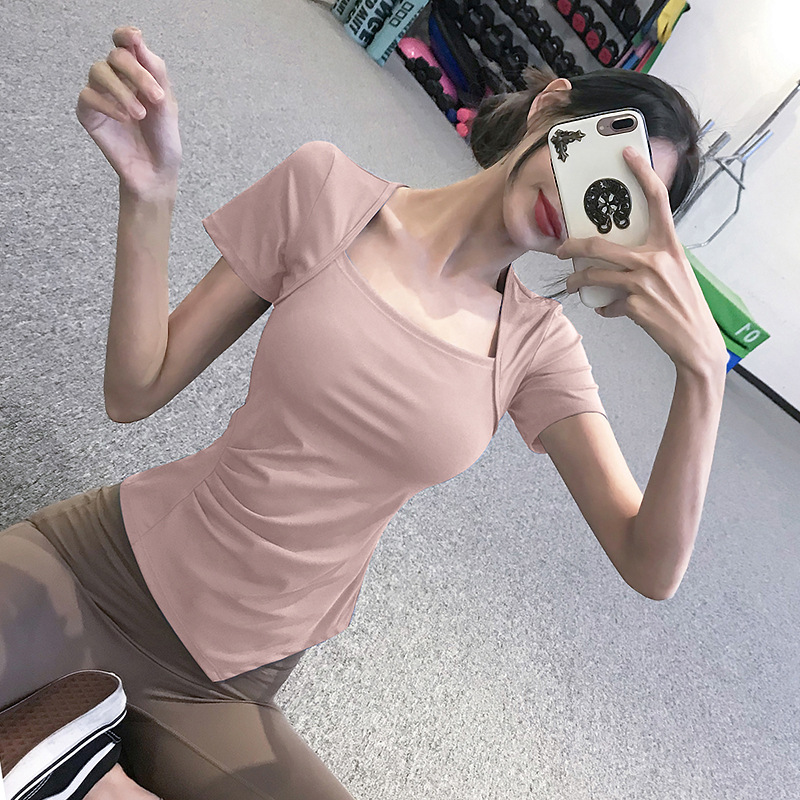 不规则瑜伽上衣女显瘦透气修身健身服百搭跑步运动短袖夏季薄