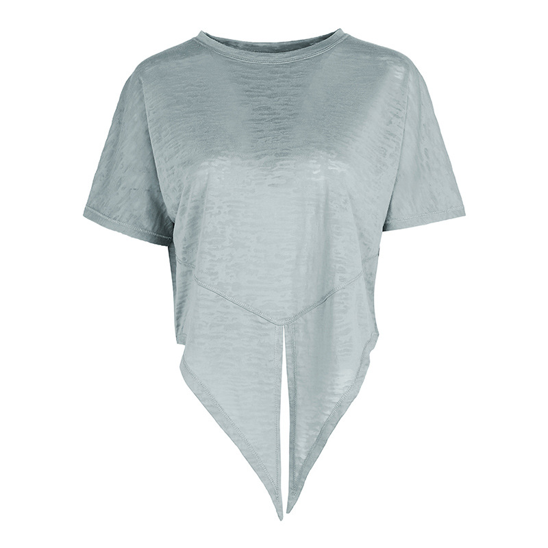 运动T恤女宽松休闲圆领绑带速干瑜伽训练上衣轻薄透气健身罩衫