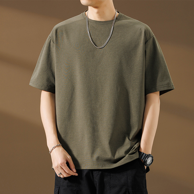 美式复古撞色重磅圆领短袖T恤男夏季新款时尚百搭宽松上衣情侣衫