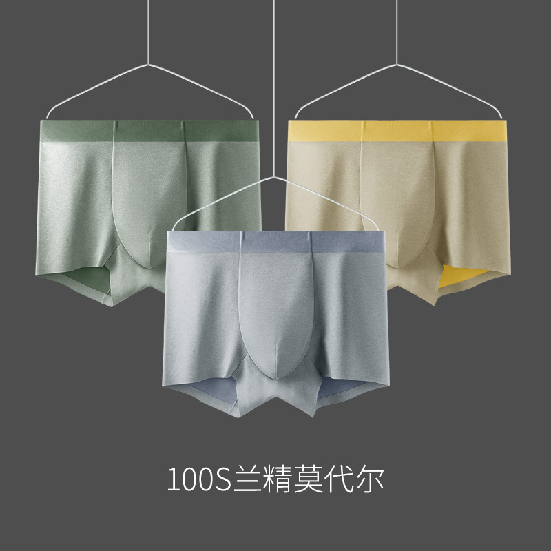 高端100S双面兰精莫代尔男士内裤丝滑无痕平角裤男式中腰抑菌短裤