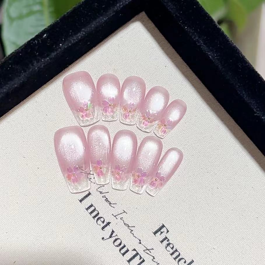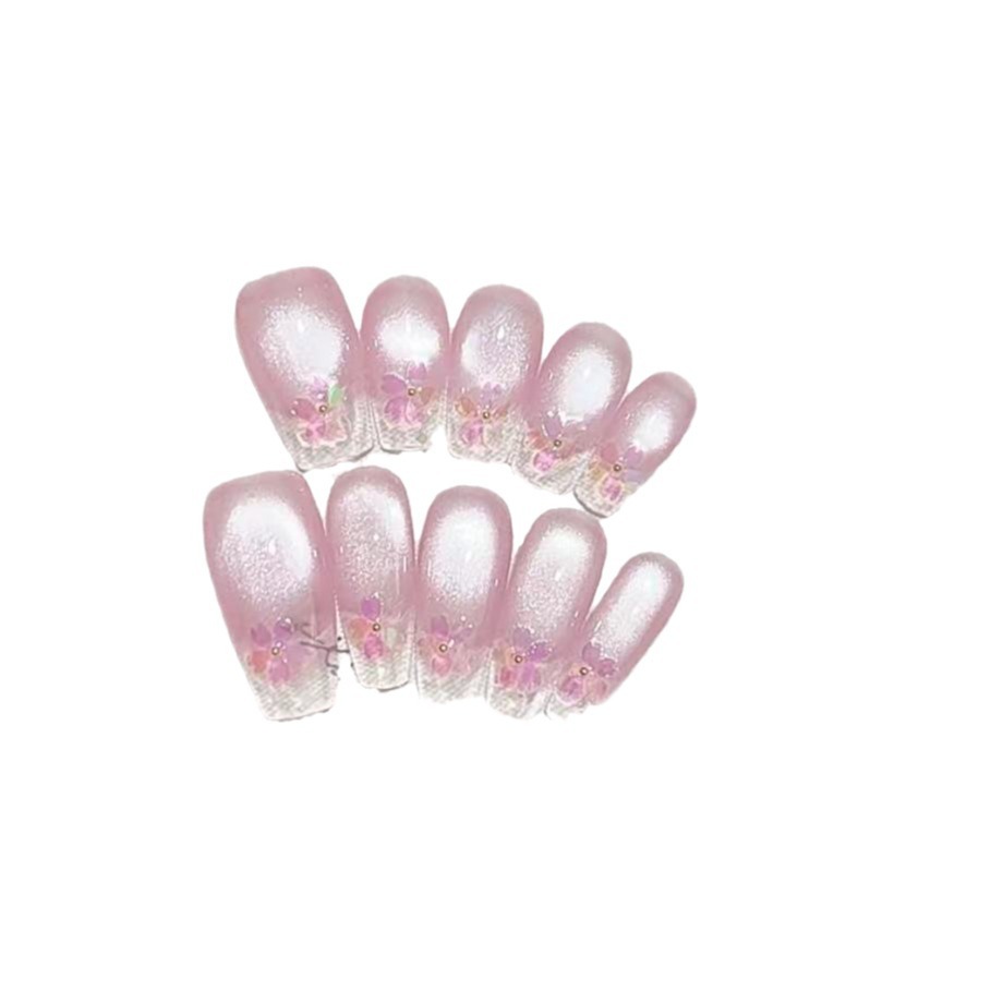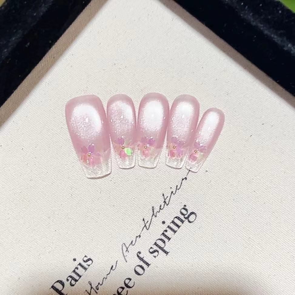 纯手工光疗穿戴甲极光樱花批发成品重复使用美甲贴片可拆卸猫