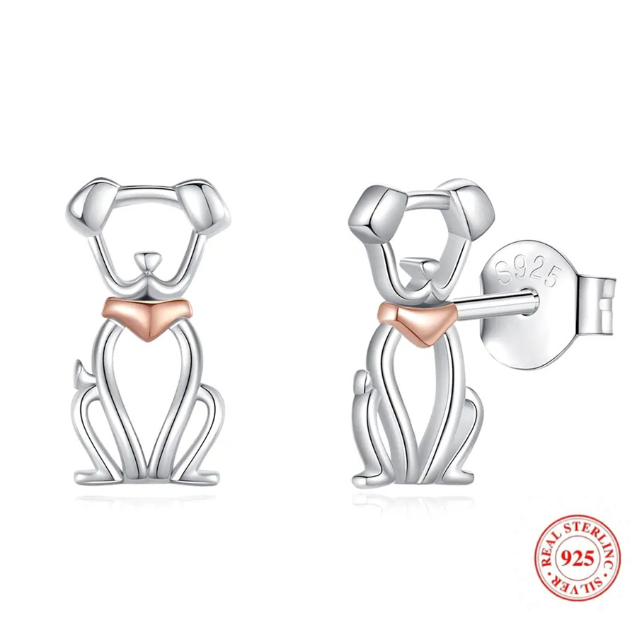 925 Sterling Silver狗主题可爱动物原创个性小狗低过敏女士耳钉