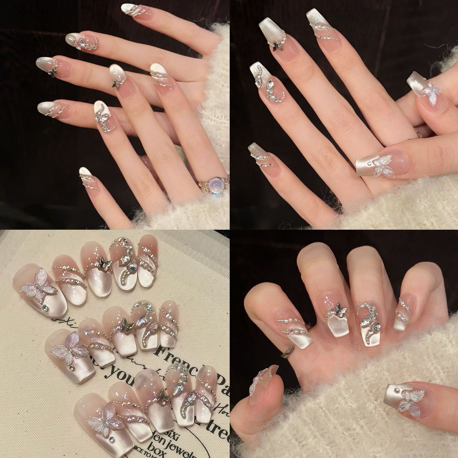 【蝶春蛇】艺禾高品爆款纯手工穿戴甲绵密猫眼蝴蝶高级美甲贴片