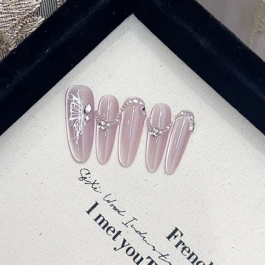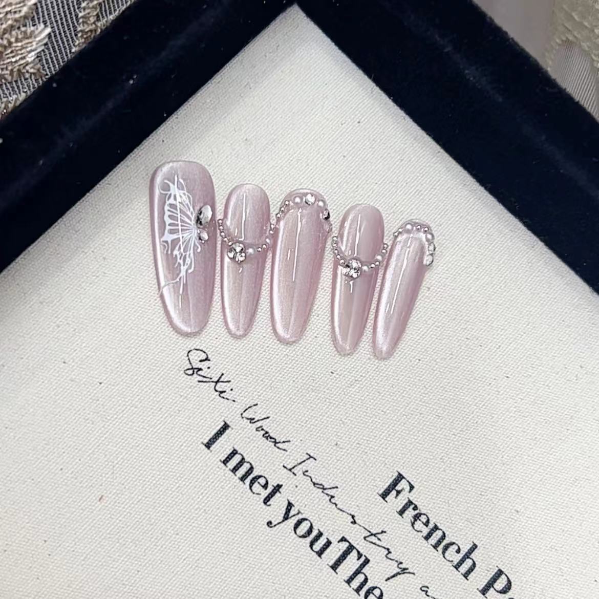 纯手工光疗穿戴甲柔珠小姐果批发成品重复使用美甲贴片可拆卸猫