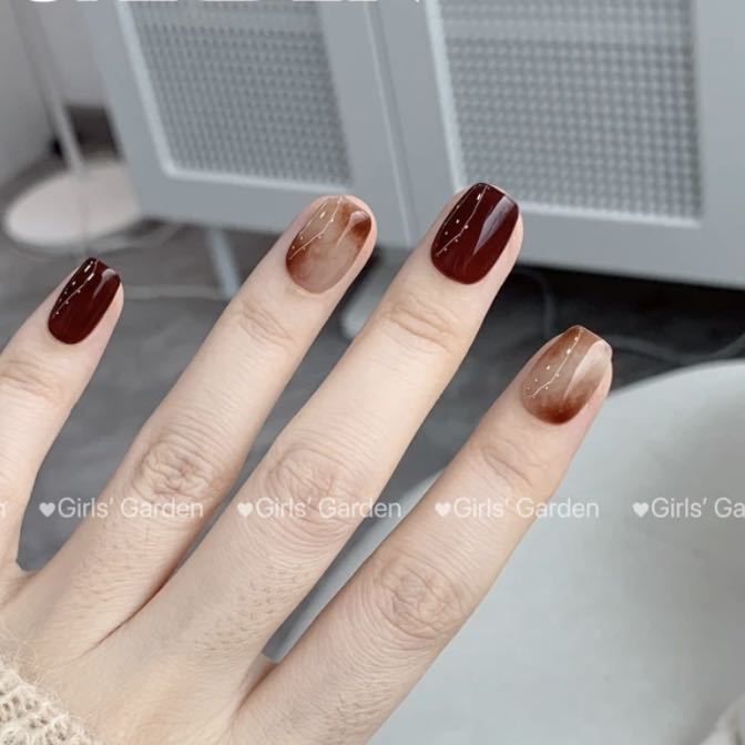 纯手工光疗美甲焦糖琥珀穿戴甲批发成品重复使用美甲贴片可拆卸美