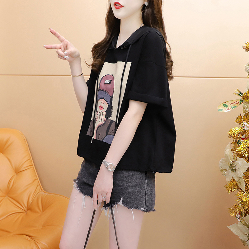 纯棉短袖体t恤女夏季新款宽松连帽网红炸街百搭短款小个子上衣潮