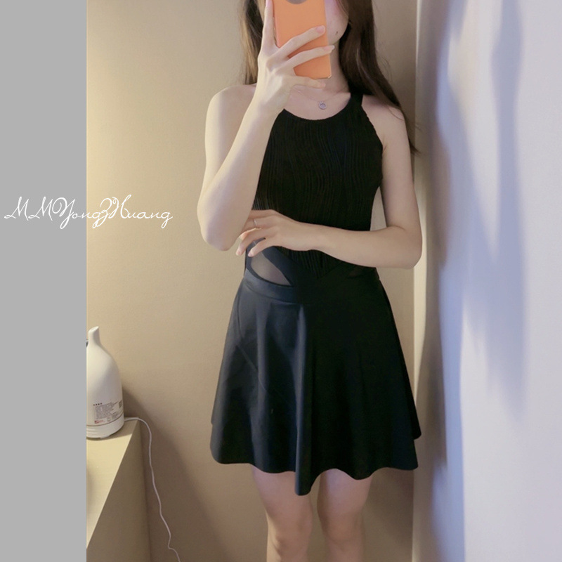 泡温泉游泳衣款新款白色保守微胖女孩子遮肚显瘦黑色游泳衣连