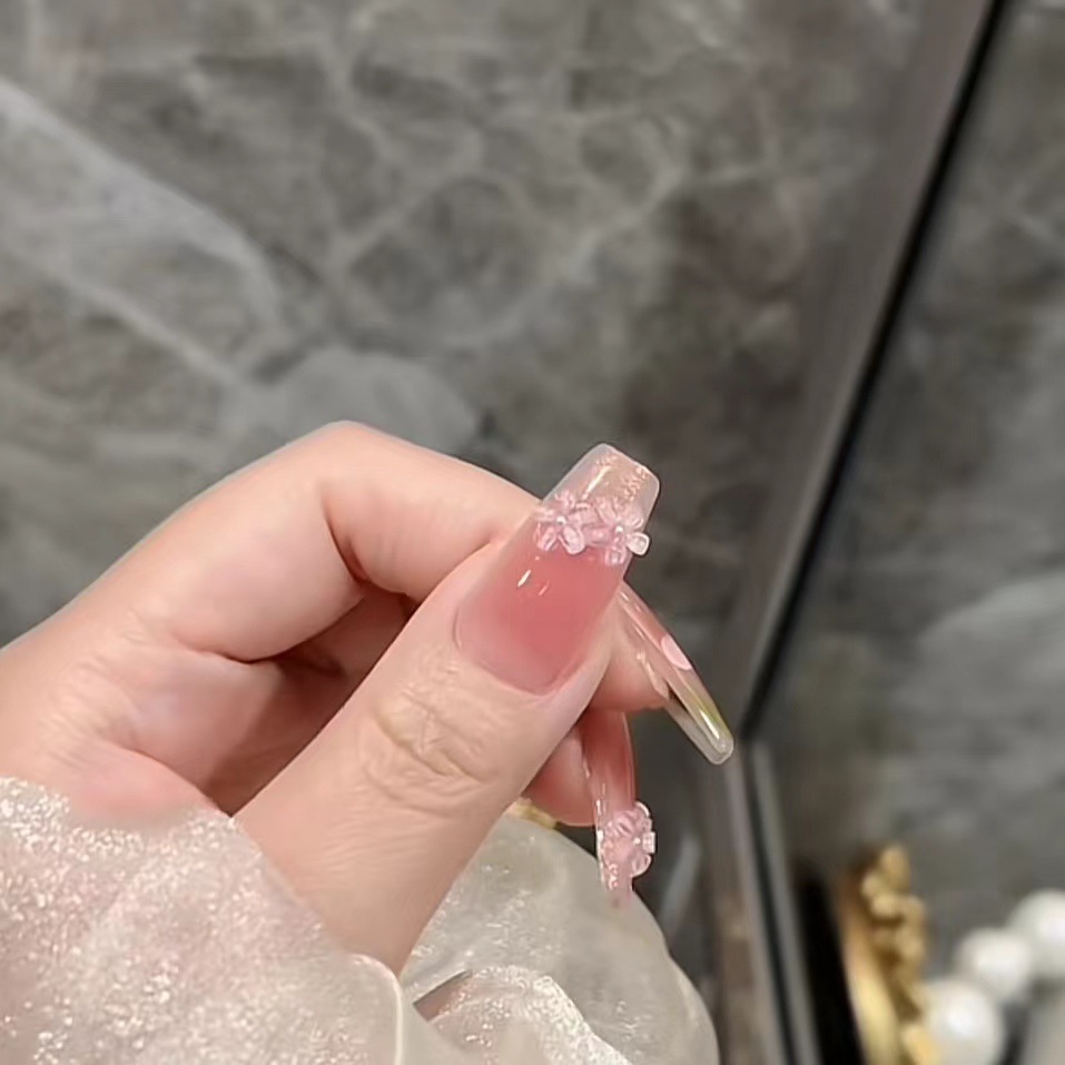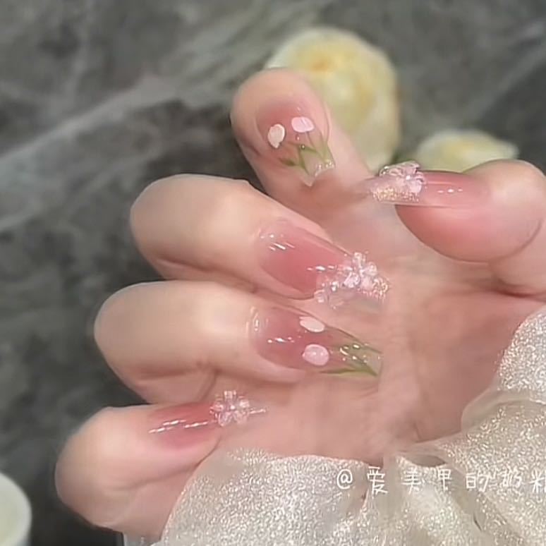 纯手工光疗穿戴甲新款花海批发成品重复使用美甲贴片可拆卸