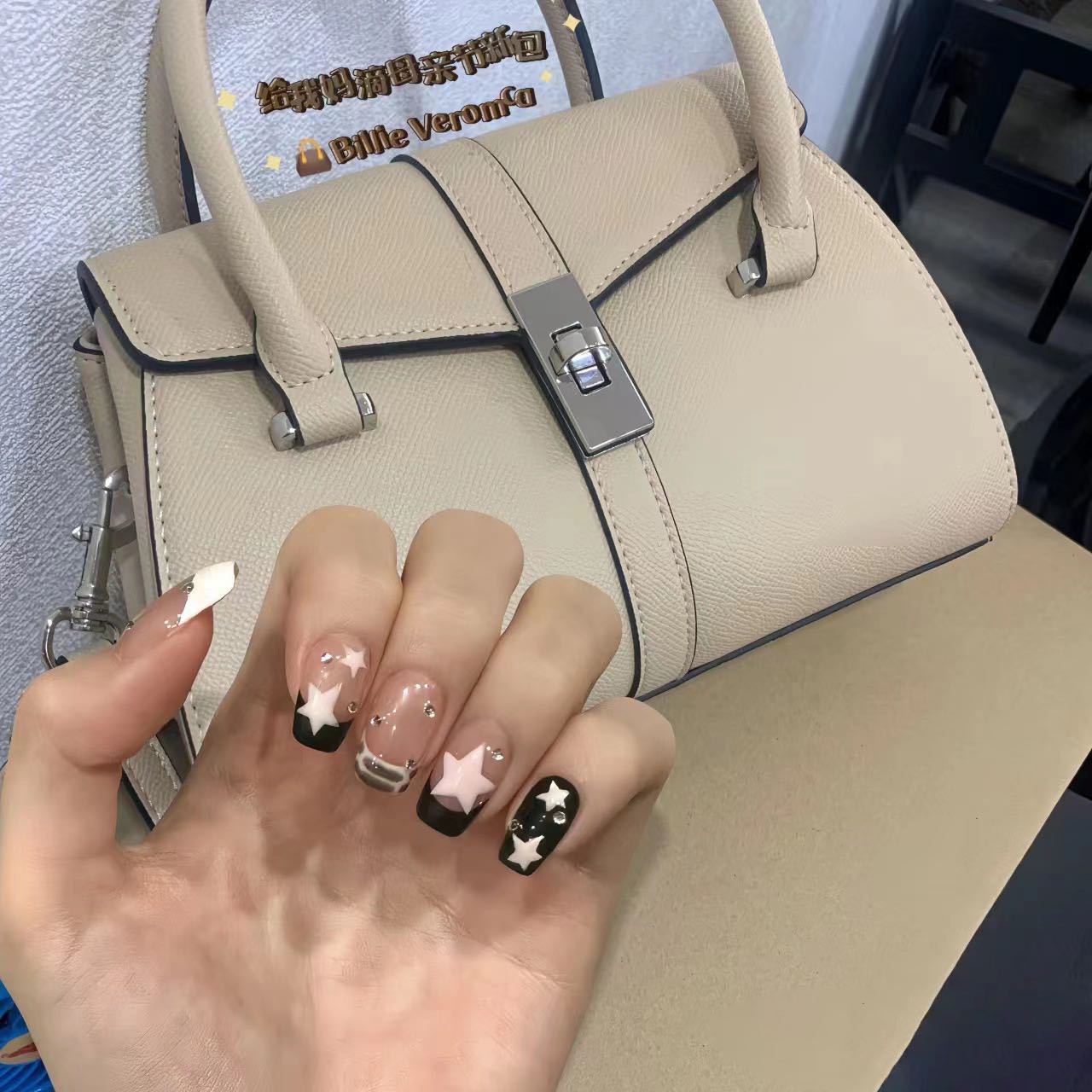 纯手工光疗穿戴甲甜酷辣妹穿戴甲批发成品重复使用美甲贴片可拆卸