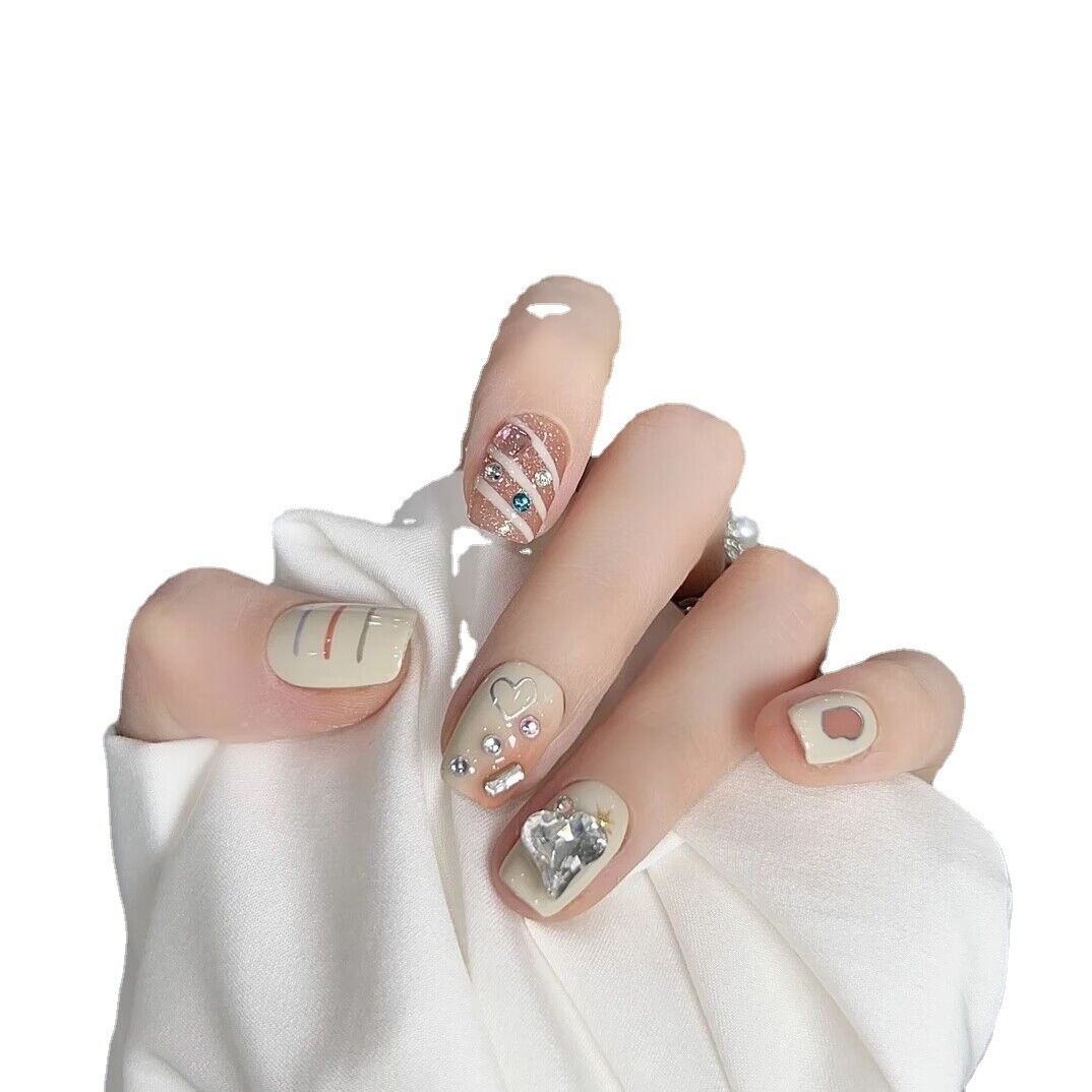 纯手工光疗穿戴甲 长尖 光年堆钻批发成品重复使用美甲贴片可拆卸