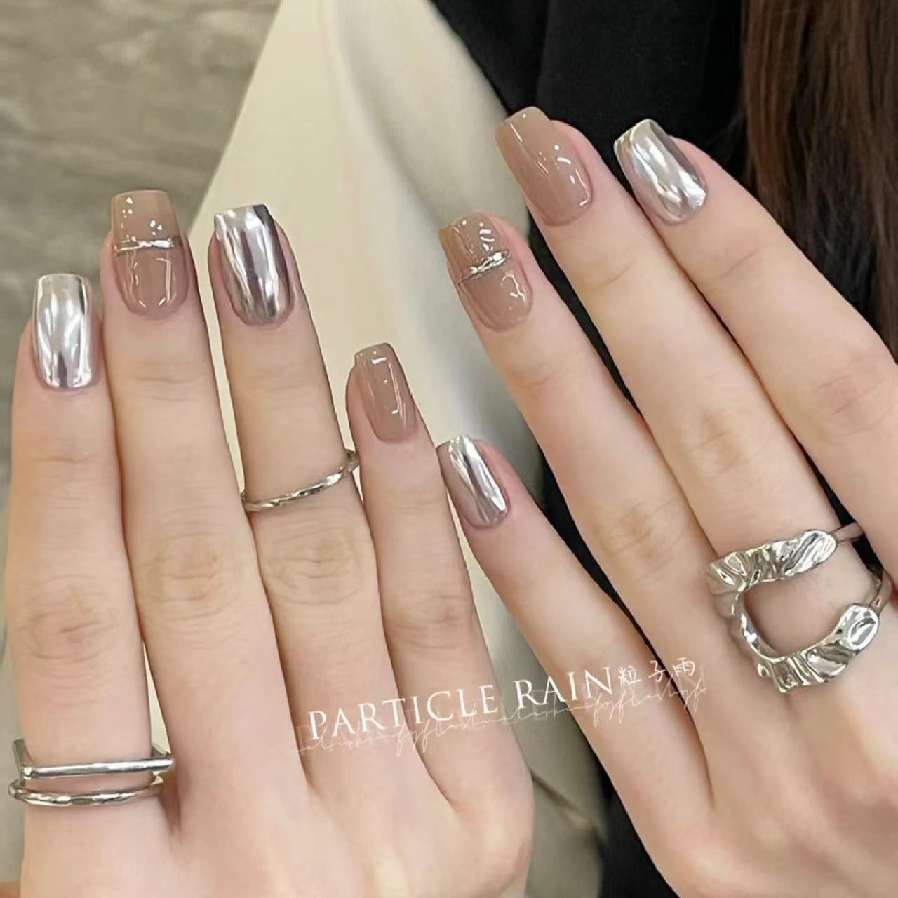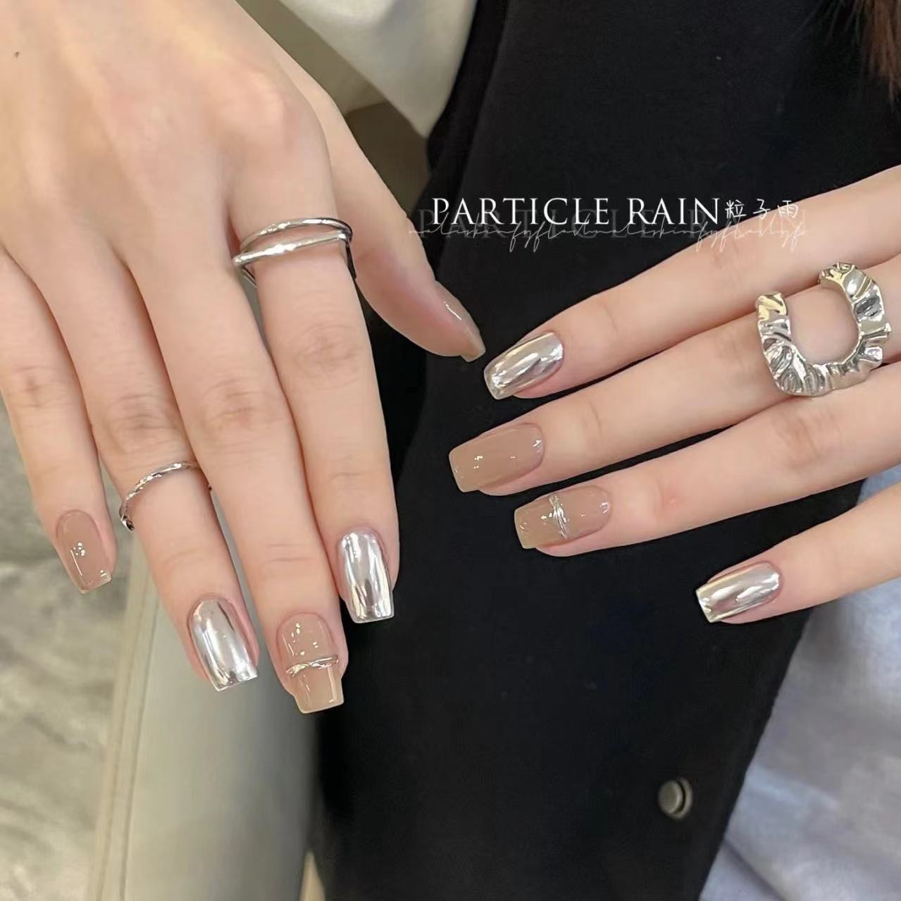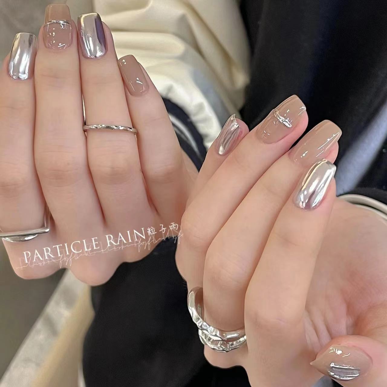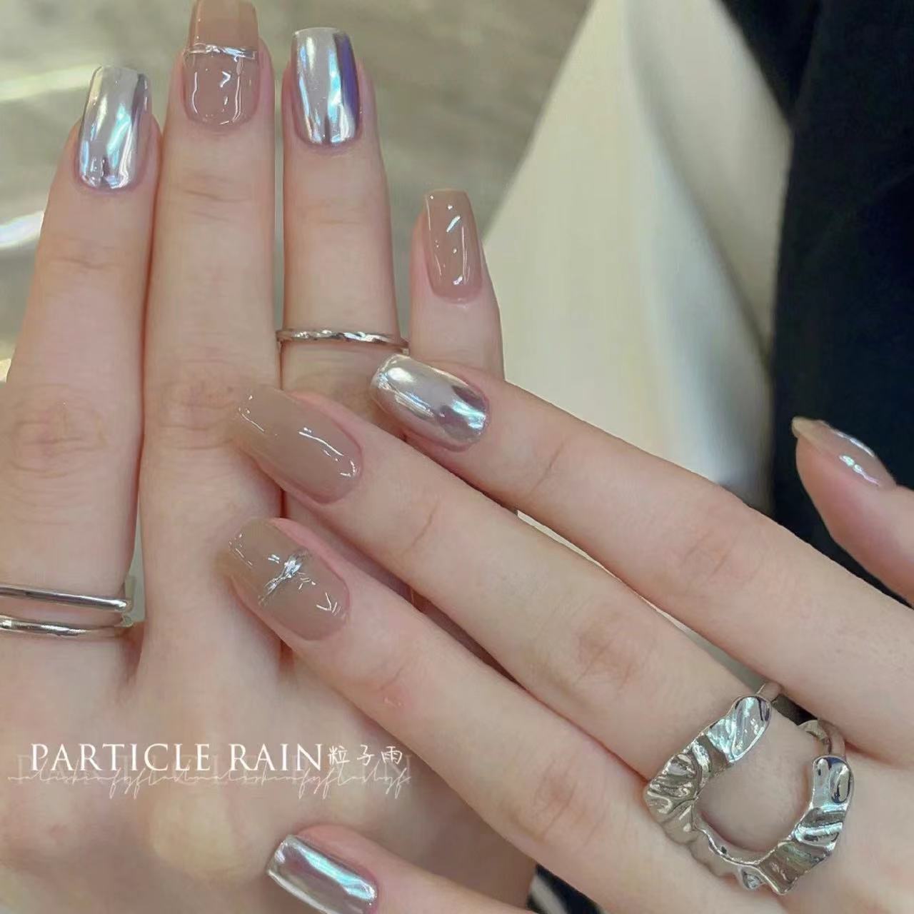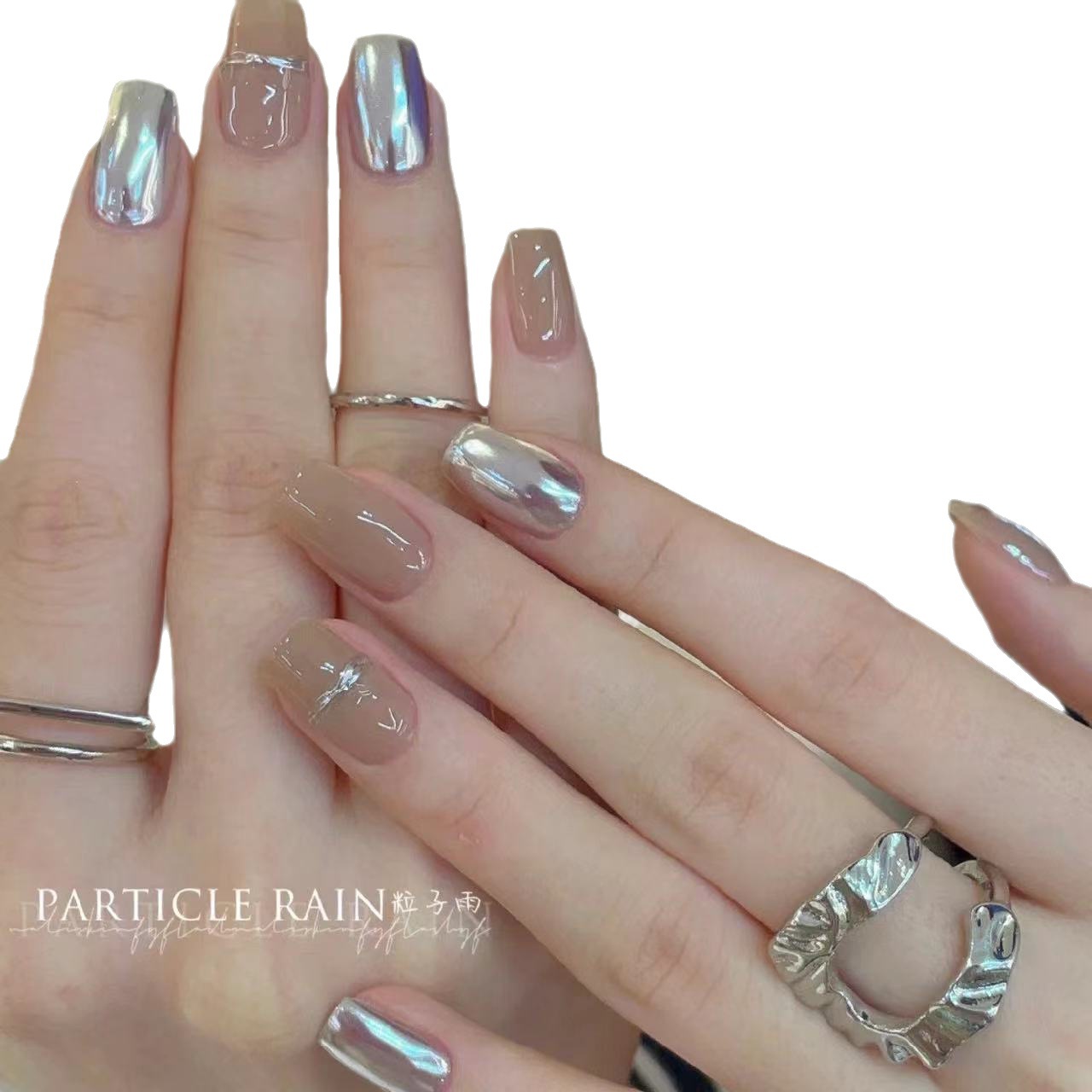 纯手工穿戴甲琉璃火焰金属银重工高级感星空猫眼爆闪方钻气质美甲