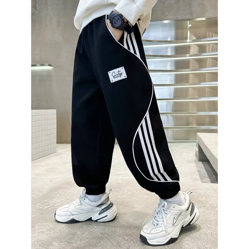 男童裤子春秋新款黑色儿童卫裤运动条纹中大童长裤春季休闲裤