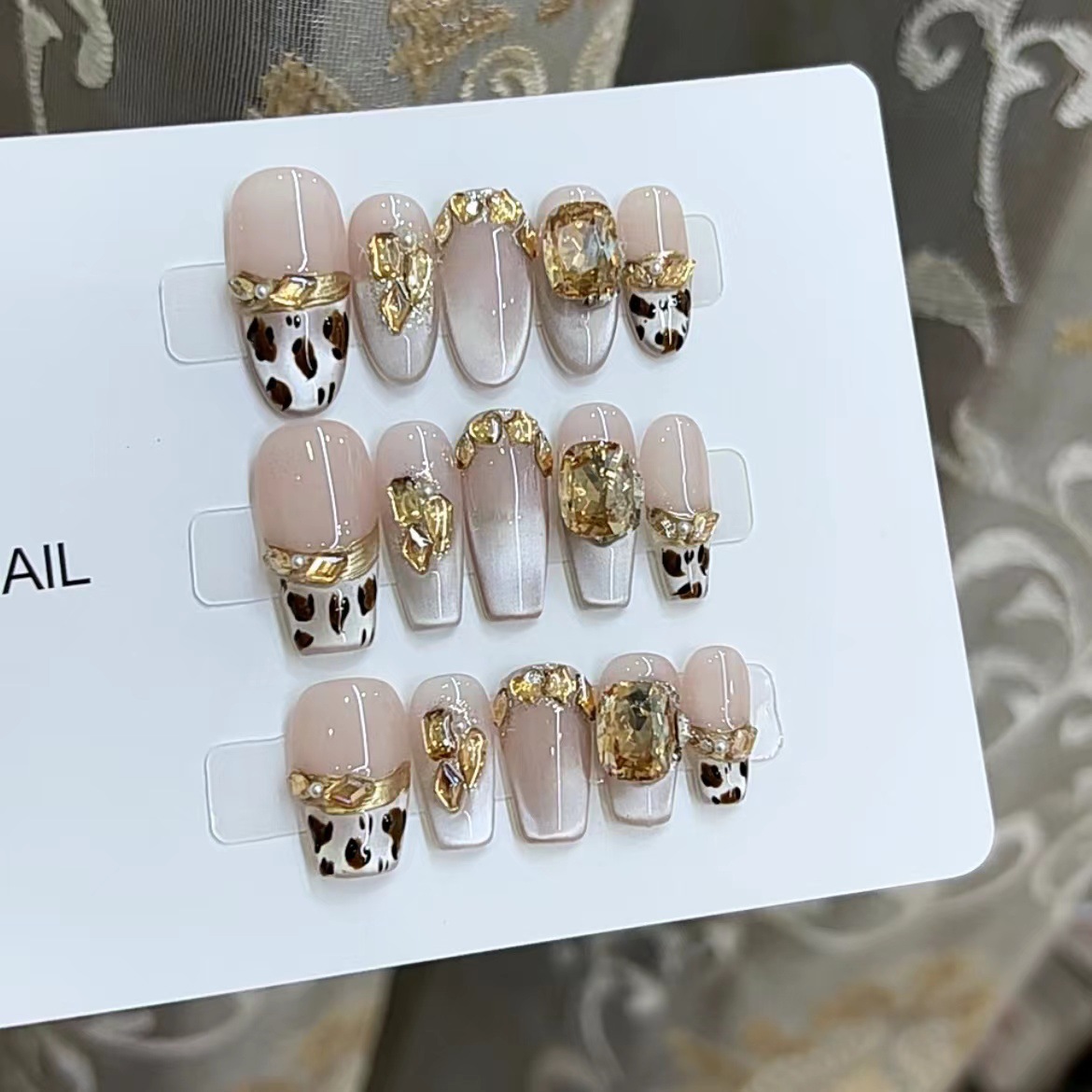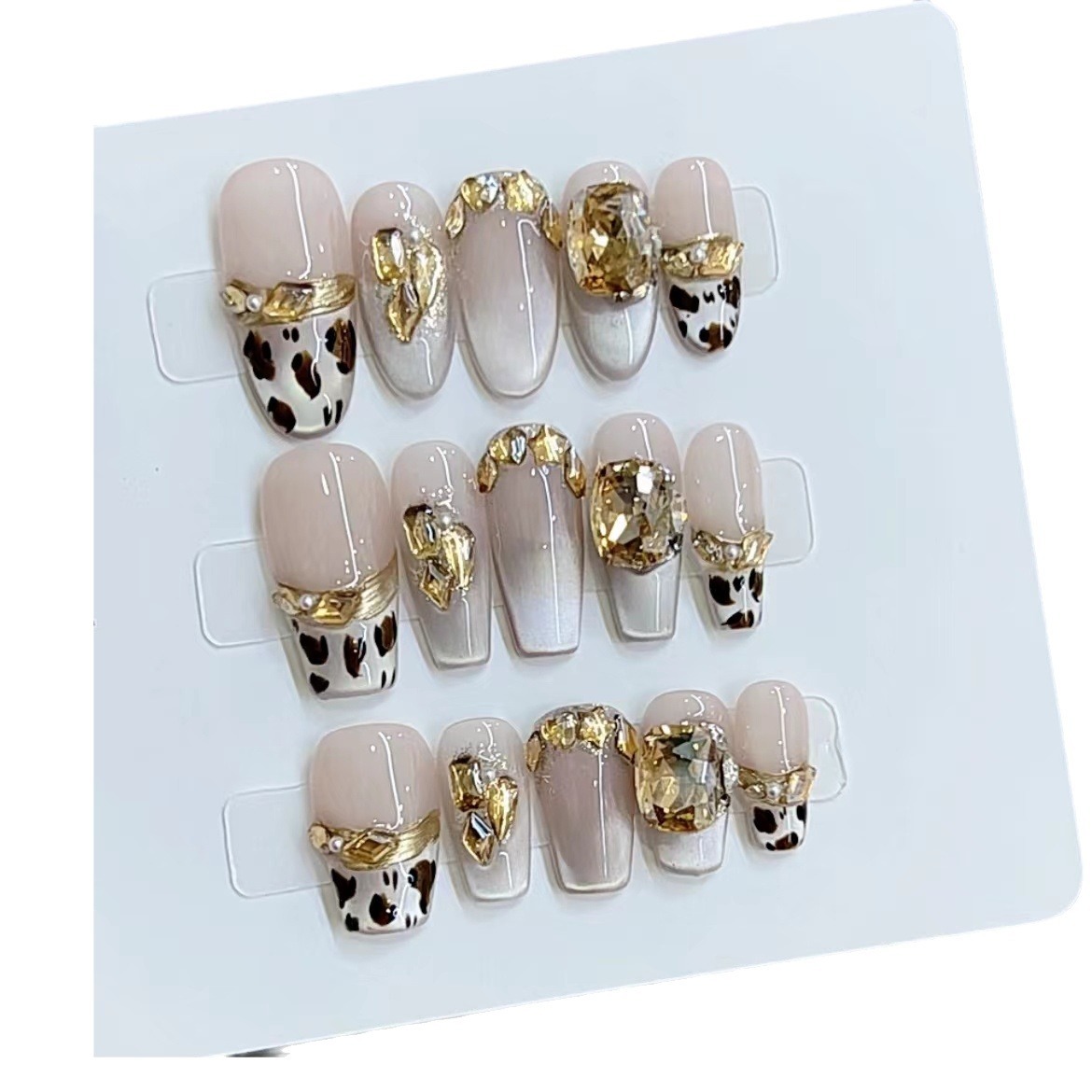 奈姿 纯手工光疗穿戴美甲猫眼小野猫批发成品重复使用贴片可拆