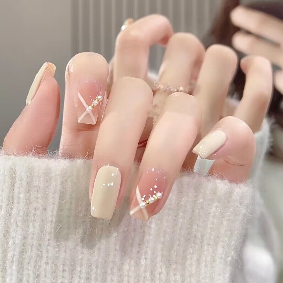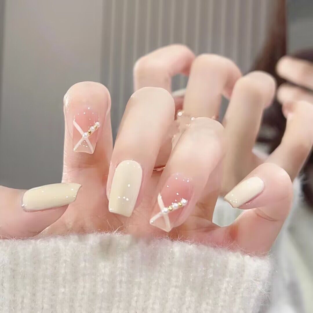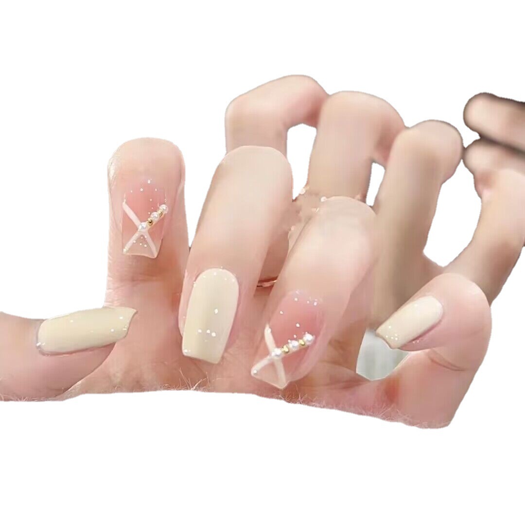纯手工光疗穿戴甲芝士奶盖穿戴甲批发成品重复使用美甲贴片