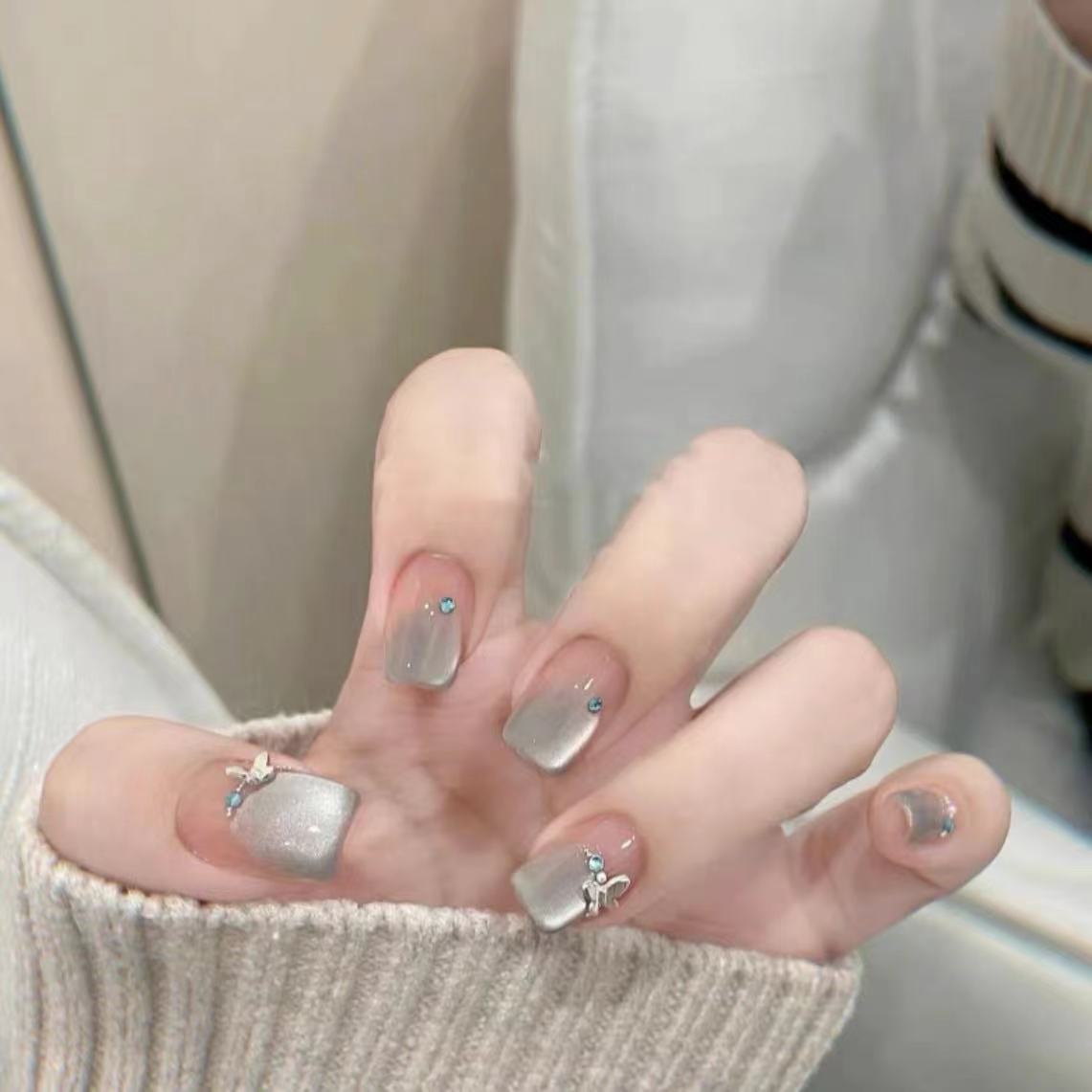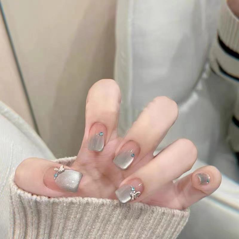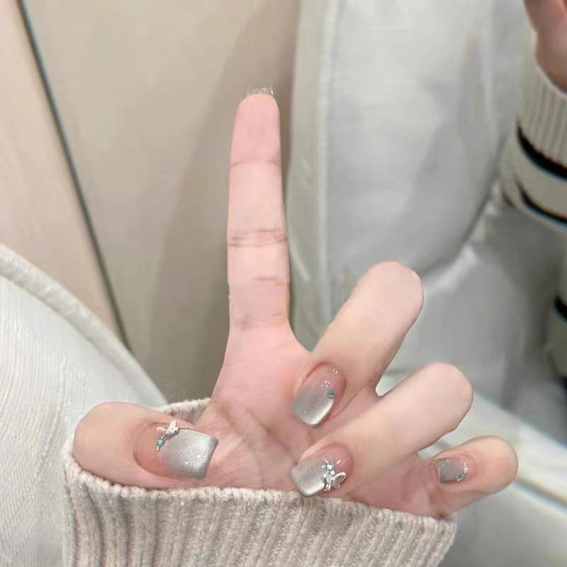 纯手工光疗穿戴甲蝴蝶入梦批发成品重复使用美甲贴片可拆卸猫