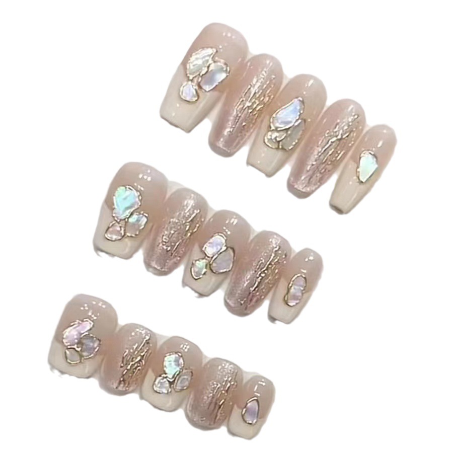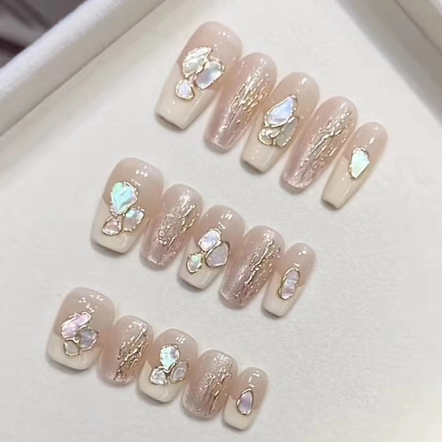 纯手工光疗美甲贝壳之恋穿戴甲批发成品重复使用美甲贴片可拆卸美
