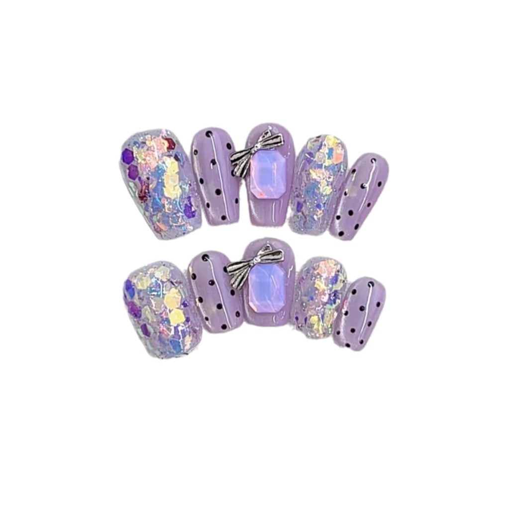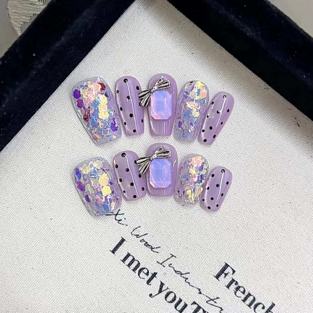 纯手工穿戴甲带刺的蝴蝶新中式紫色晕染蝴蝶美甲片可拆卸重复使用