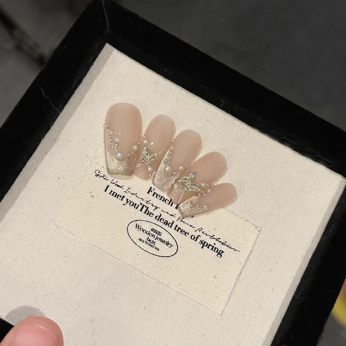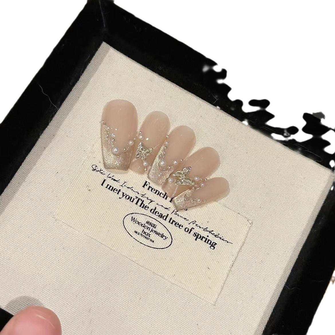 纯手工光疗穿戴甲晴岛桔梗批发成品重复使用美甲贴片可拆卸猫