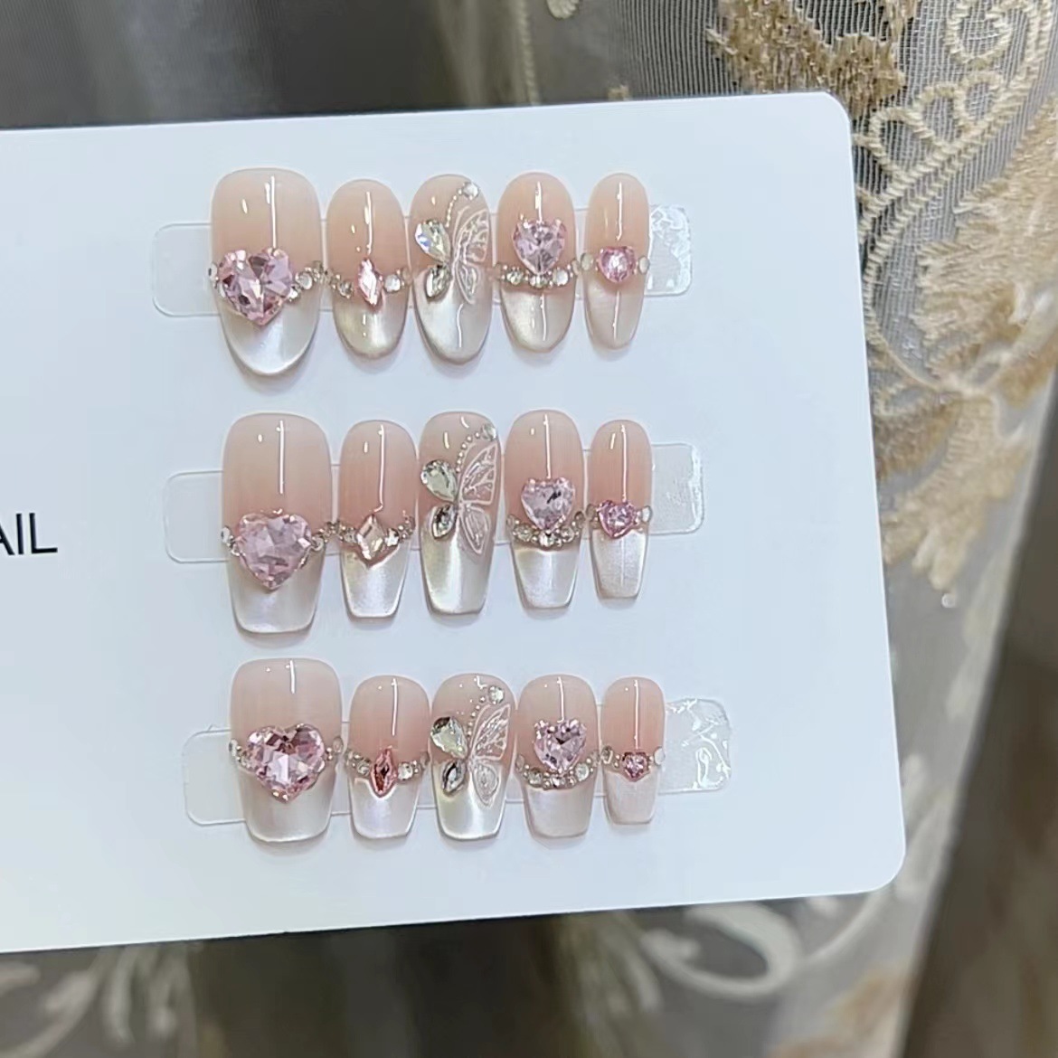 奈姿 纯手工光疗穿戴甲月下影蝶 批发成品重复使用美甲贴片可拆