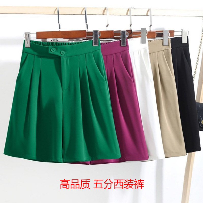 高品质五分裤西装裤女夏季薄款宽松阔腿裤胖MM大码高腰短裤休闲裤
