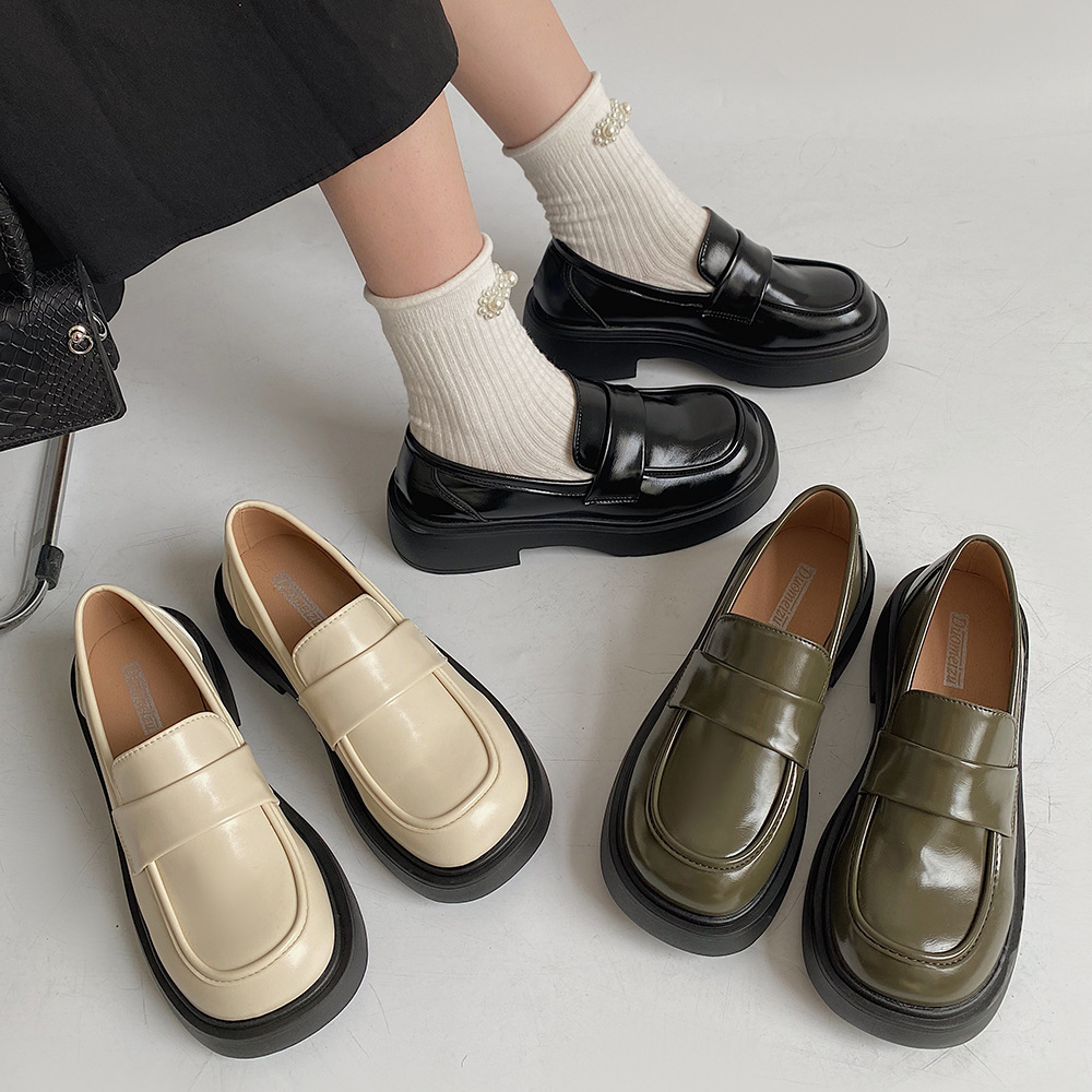 乐福鞋女英伦春季新款时尚复古风学生气质增高一脚蹬小皮鞋