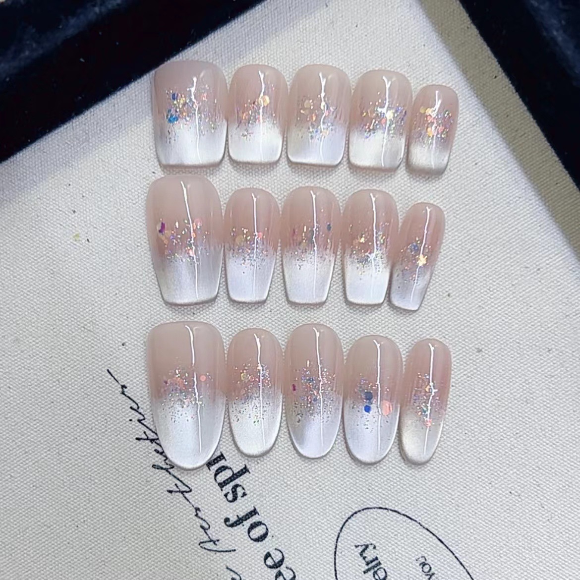奈姿 纯手工光疗穿戴甲海洋泡泡批发成品重复使用贴片可拆卸猫