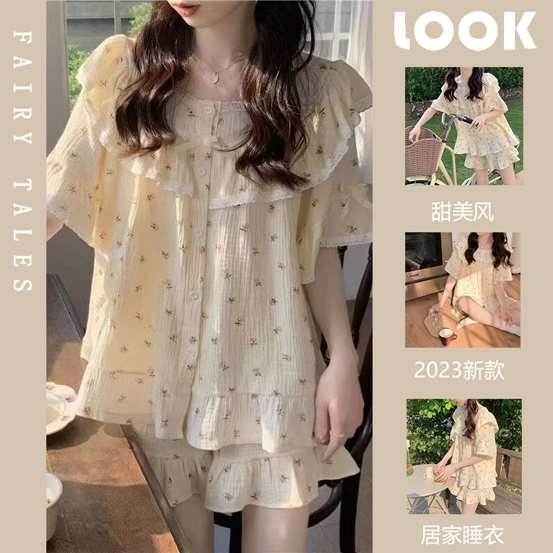 睡衣女夏季日系公主风甜美碎花短袖两件套薄款家居服