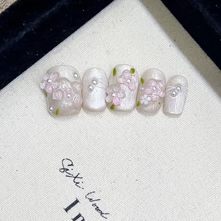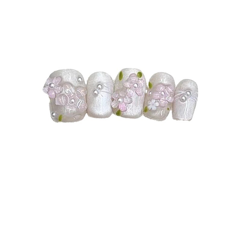 奈姿纯手工光疗穿戴甲雕花批发成品重复使用美甲贴片可拆卸