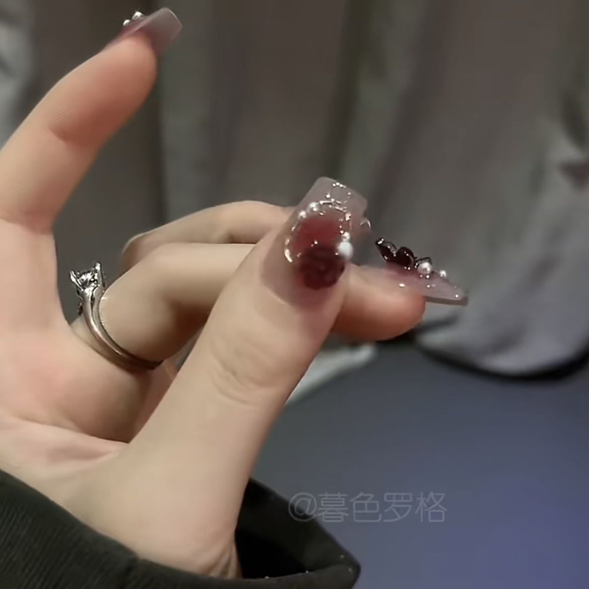 纯手工光疗穿戴甲乌梅子酱戴甲批发成品重复使用美甲贴片