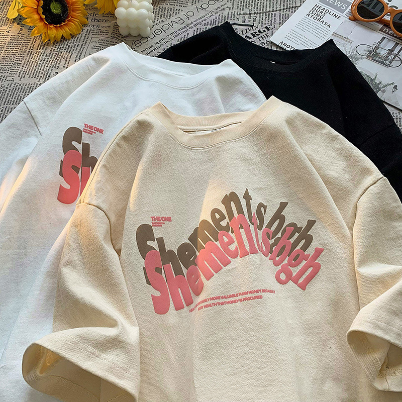 美式潮牌字母印花短袖t恤男款夏季潮流宽松半袖圆领体恤上衣