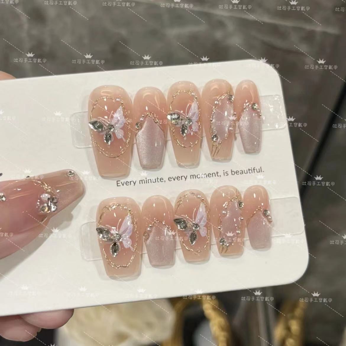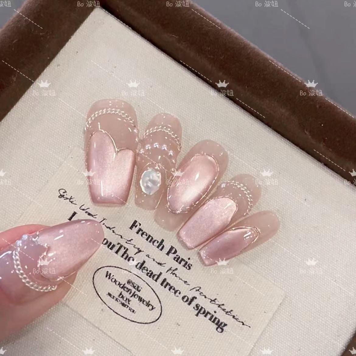 纯手工光疗穿戴甲西柚猫眼批发成品重复使用美甲贴片可拆卸