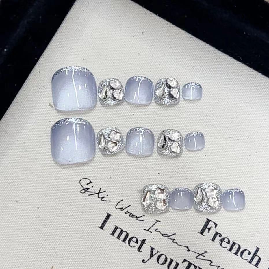 纯手工光疗穿戴甲脚甲蓝猫眼批发成品重复使用美甲贴片可拆卸