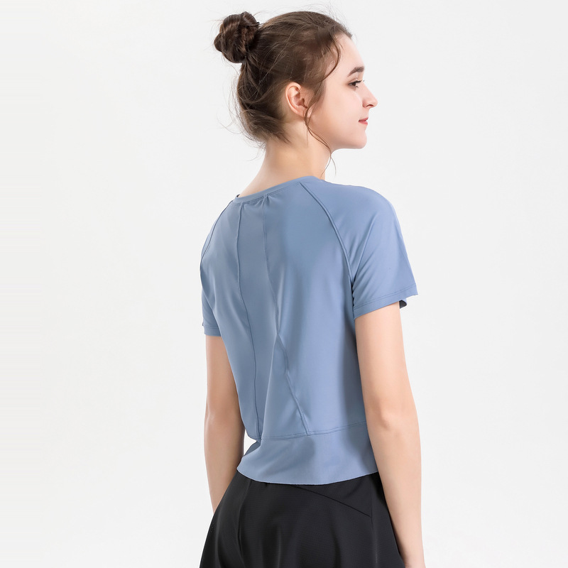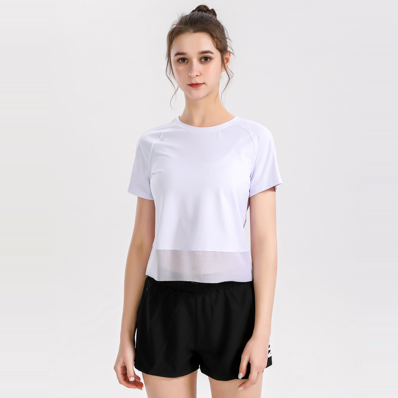 瑜伽运动健身跑步上衣女短袖弹力宽松透气网纱速干T恤女