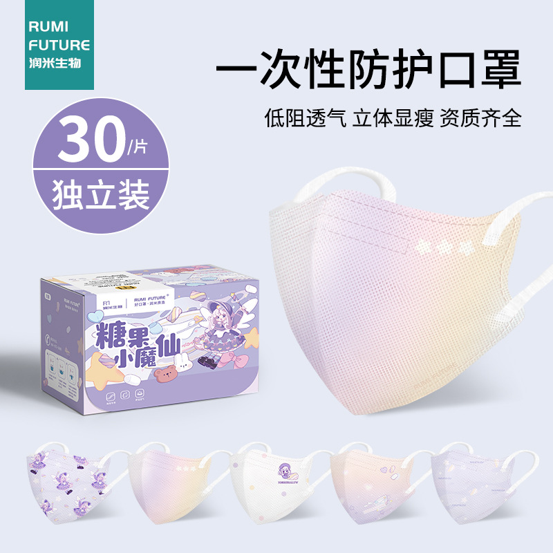 30片儿童3D立体口罩透气舒适可爱时尚糖果小魔仙系列独立包装