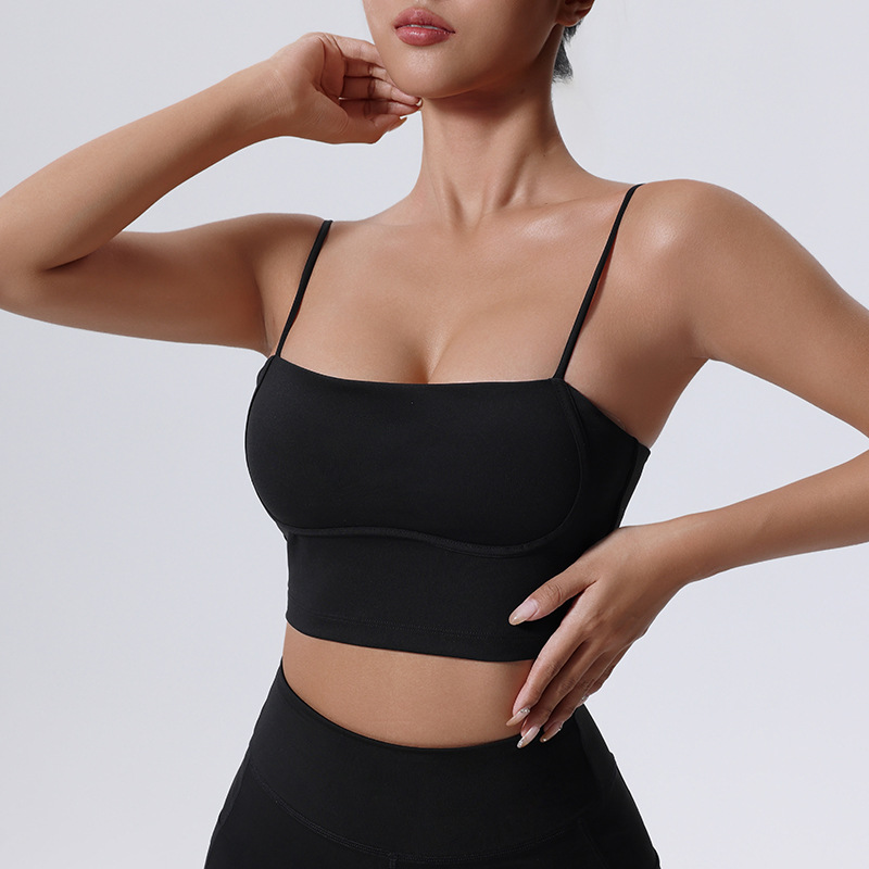 新跨境外贸时尚美颈斜肩裸感瑜伽内衣运动健身文胸带胸垫