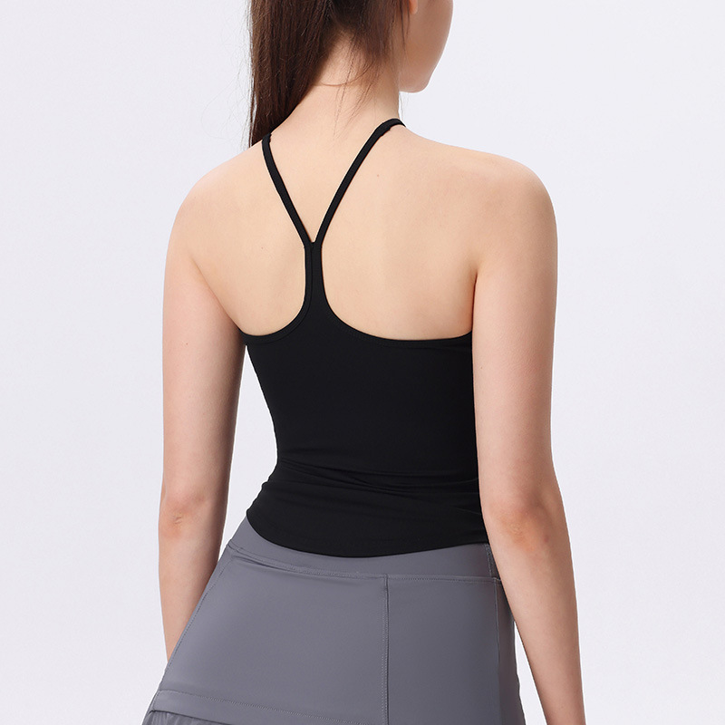含胸垫运动吊带背心女无袖紧身显瘦瑜伽健身短袖T恤速干跑步上衣