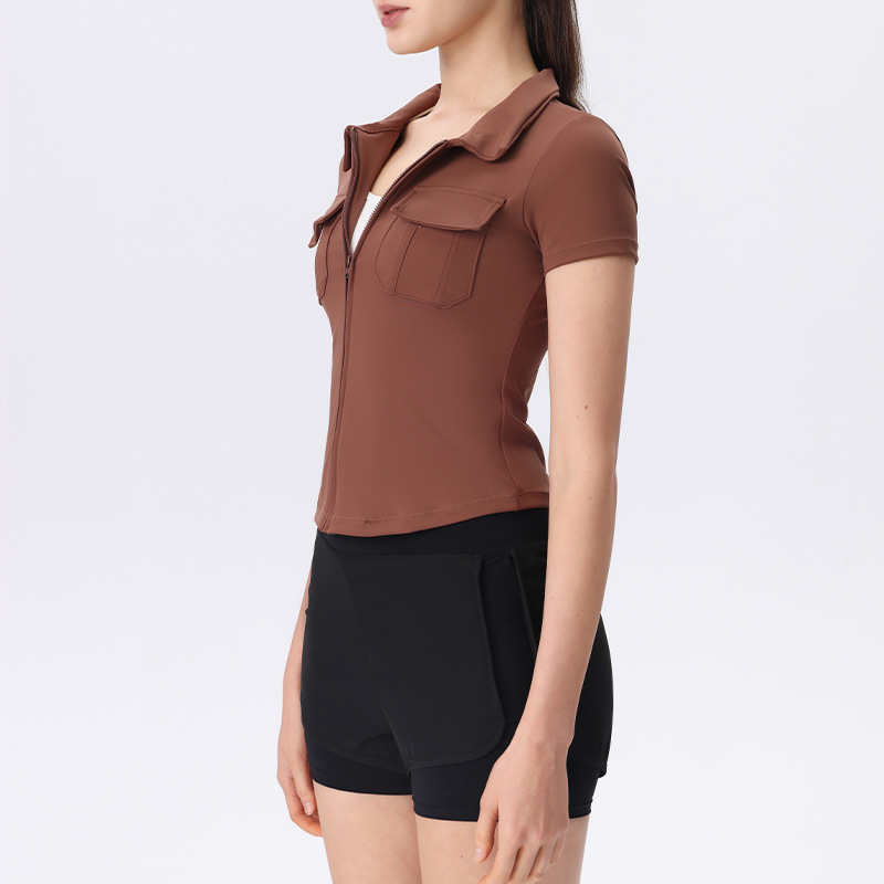 夏季瑜伽跑步运动休闲上衣健身立领短袖拉链外套女普拉提速干修身