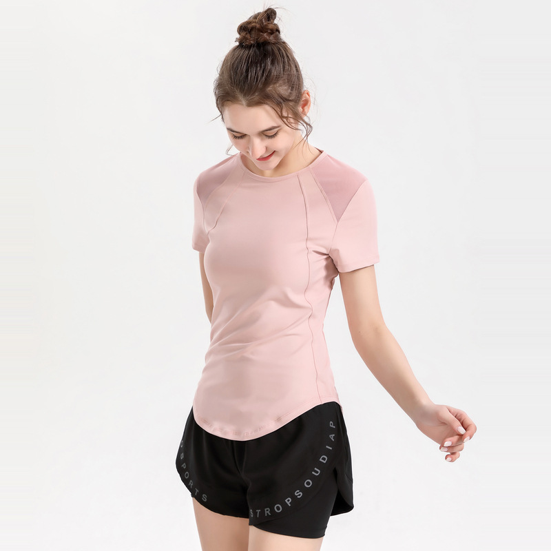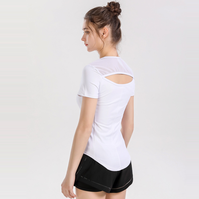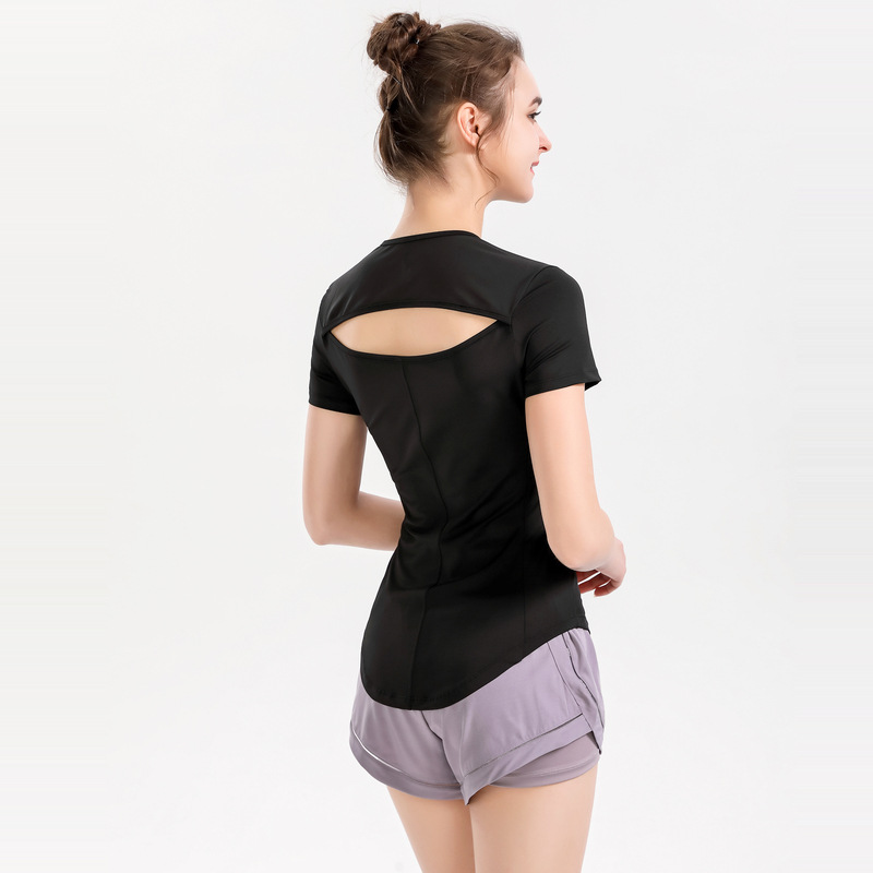 运动短袖女休闲健身瑜伽跑步上衣弹力透气速干紧身T恤女露背性感