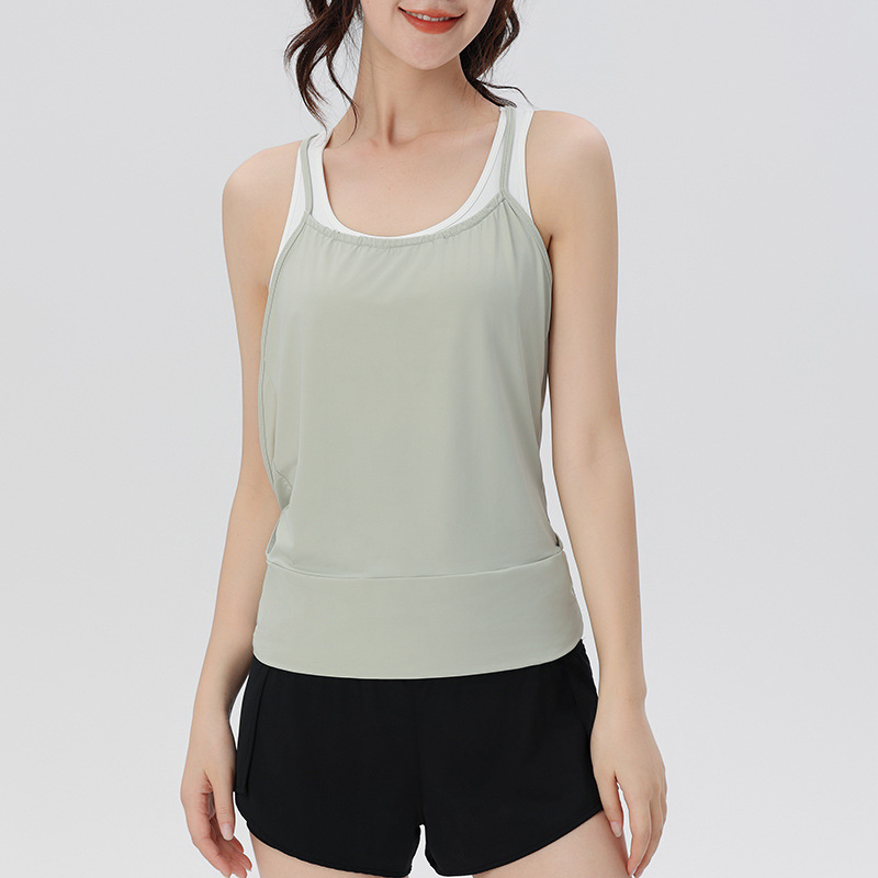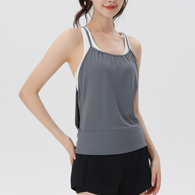 夏季瑜伽运动背心女休闲健身跑步无袖宽松速干T恤女外穿美背罩衫