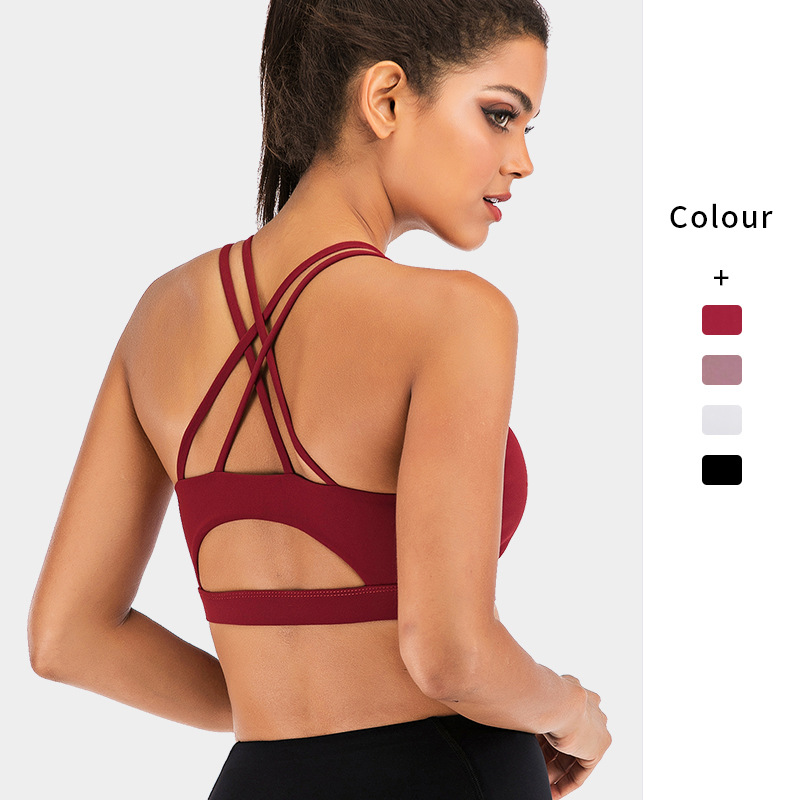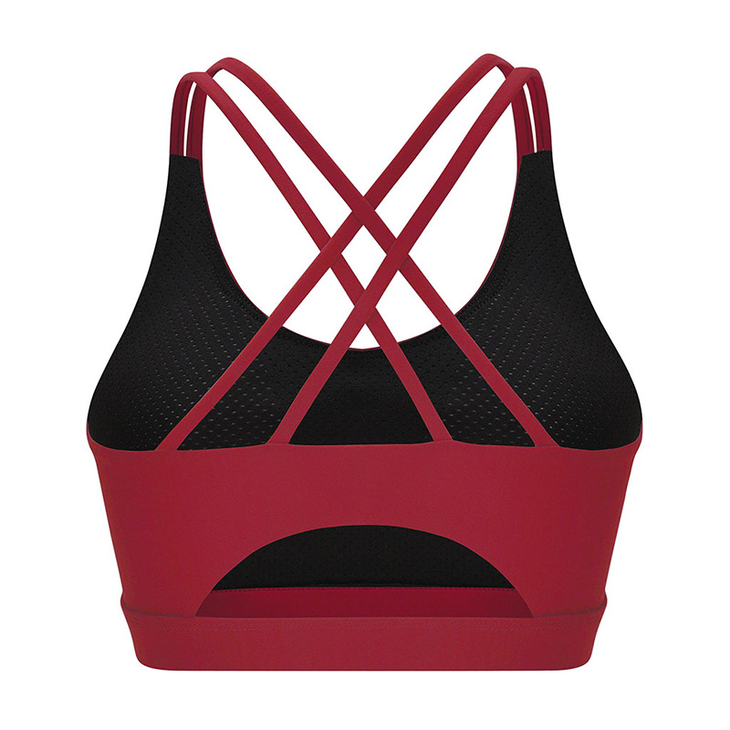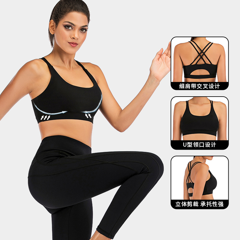 欧美运动内衣 高强度细肩缕空美背瑜伽文胸女跑步聚拢运动背心