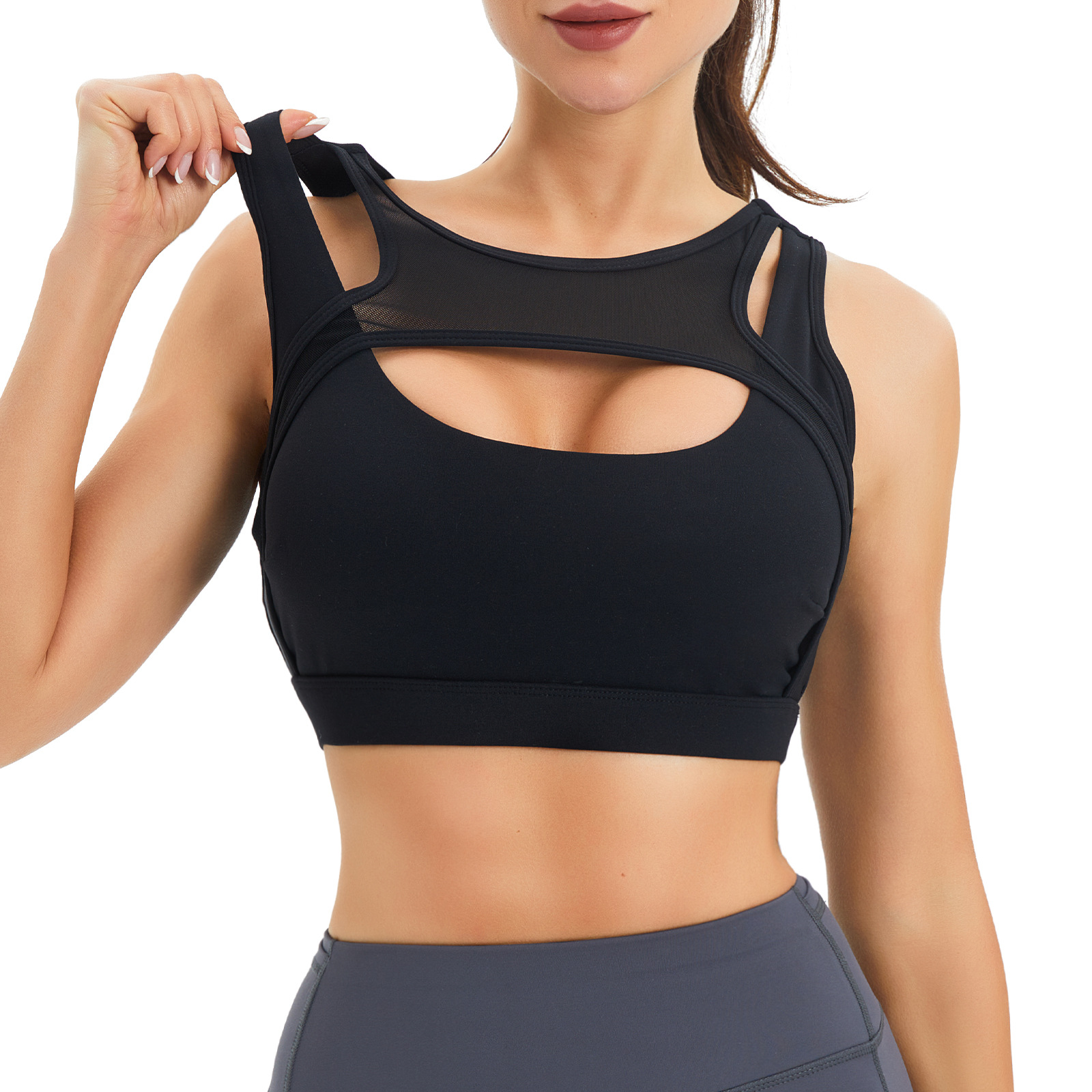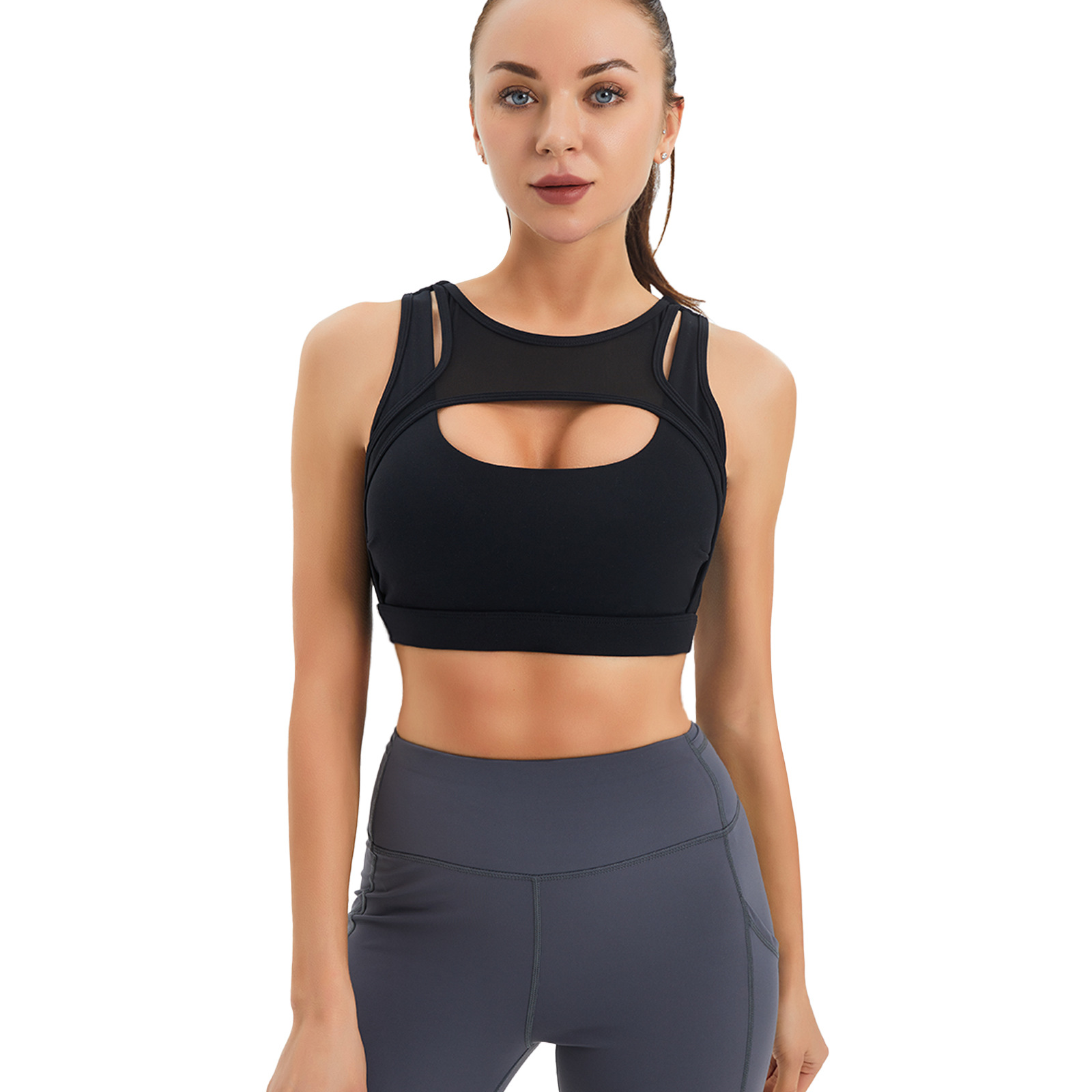 欧美大胸防震运动内衣女瑜伽文胸健身防震运动背心镂空瑜伽内衣