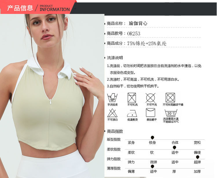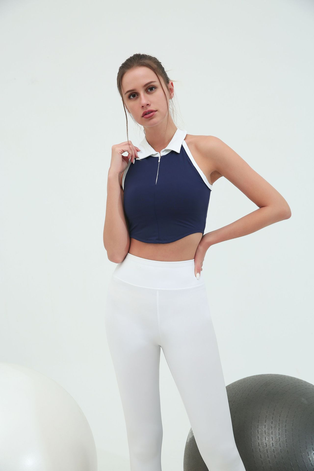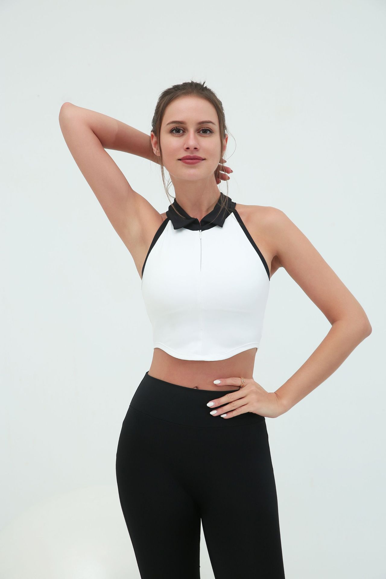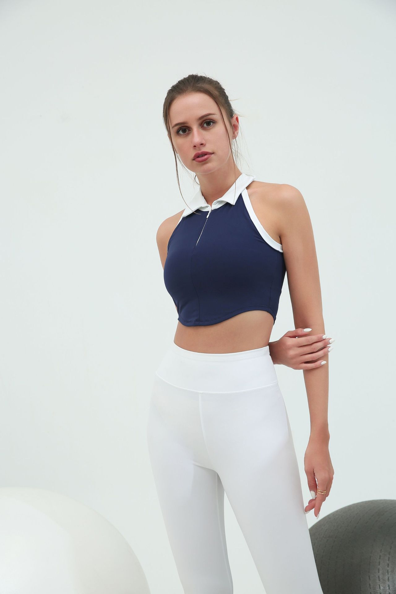 外贸翻领撞色高弹速干运动健身背心女 含胸垫瑜伽训练不规则上衣