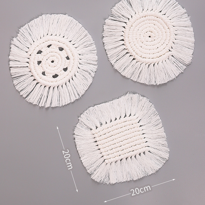 北欧风手工编织棉绳流苏杯垫波西米亚餐垫桌垫拍照装饰桌垫隔热垫